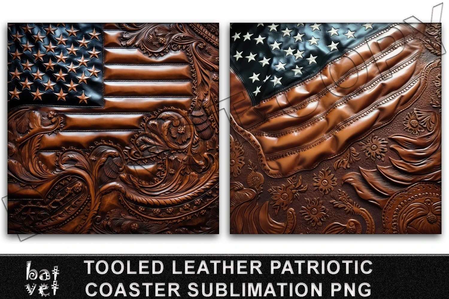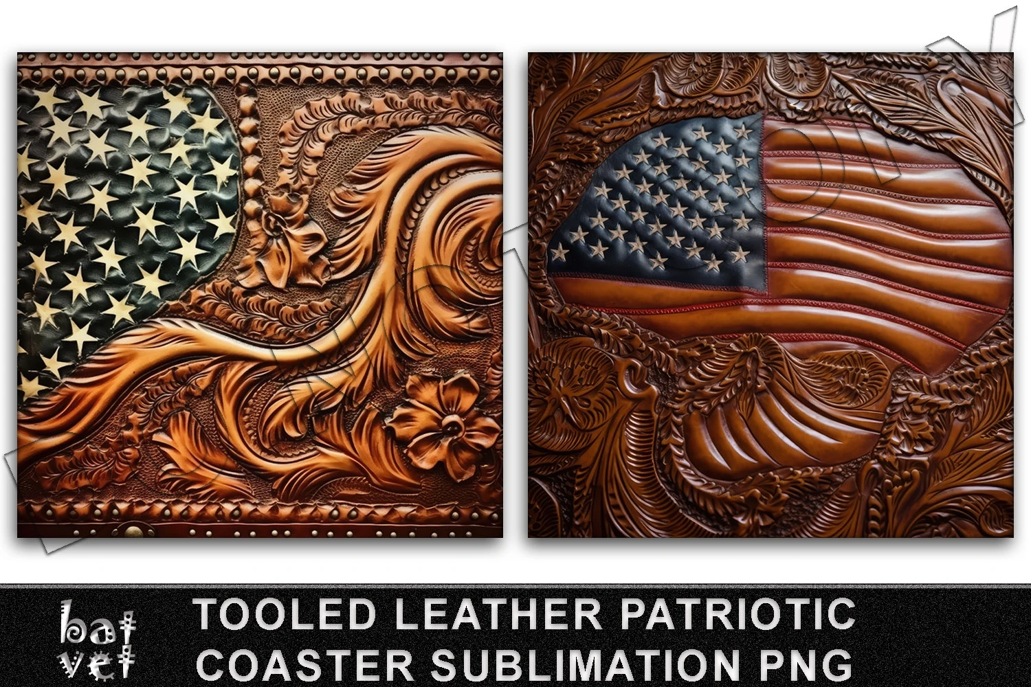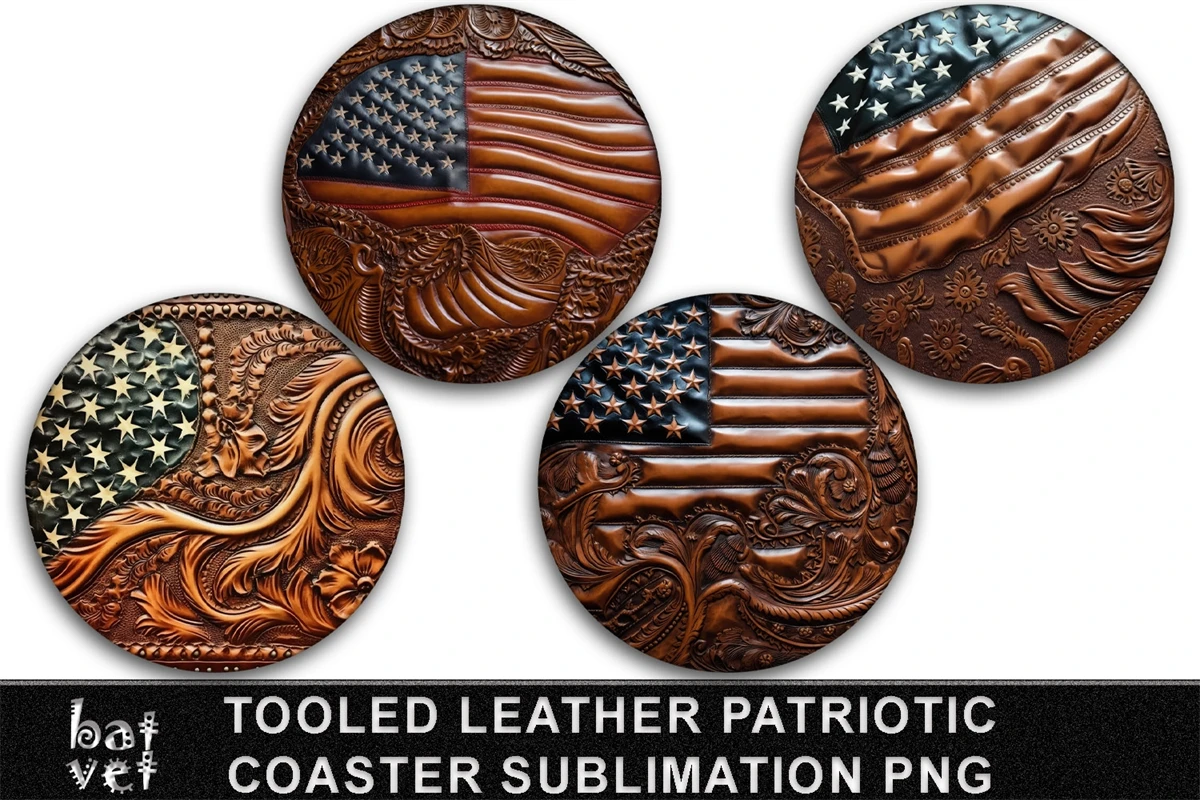 Tooled Leather USA Flag Coaster Sublimation Design PNG