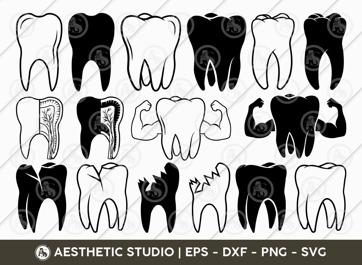 Unleash your creativity and add a unique touch to your dental projects with our Teeth SVG & Teeth Silhouette Bundle. This comprehensive collection of digital assets, featuring SVG, DXF, PNG, and EPS formats, empowers you to incorporate toothy charm into a variety of designs, from dental clinic branding to educational materials.