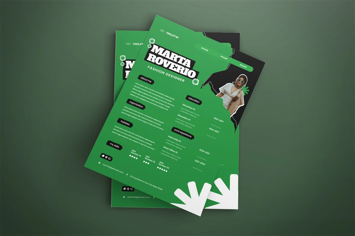 creative resume and cover letter template that will make your resume stand out from the hundreds of resumes employers get. It gives you the information you need, such as your name, contact information, social media links, education, experience, skills and interests. Also, it comes with three different color schemes.