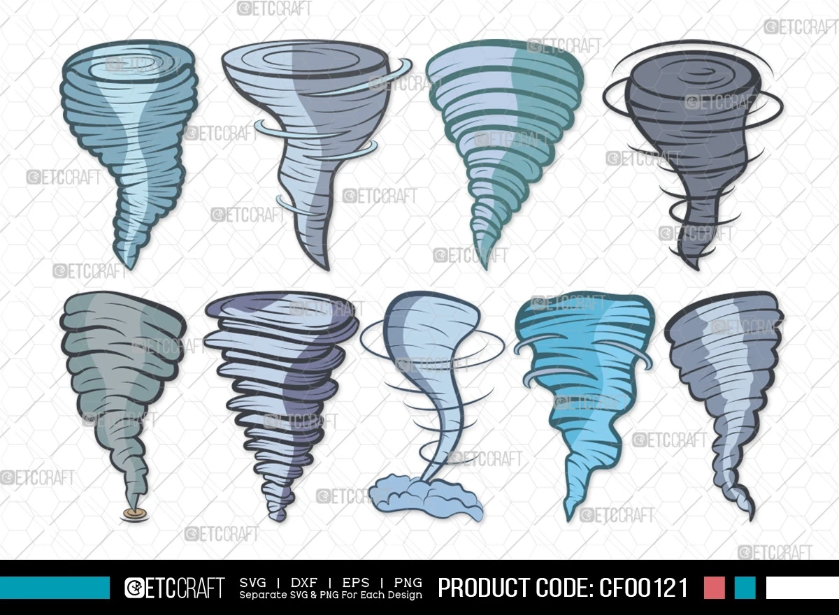 Enhance your creative projects with our Tornado Clipart Twister Storm Hurricane SVG Cut File Bundle. This collection of high-quality digital designs brings the power and drama of a tornado to your fingertips. Perfect for various crafts and DIY projects, this bundle is a must-have for those looking to add a touch of nature's fury to their creations.