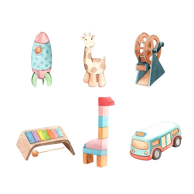 Toys for baby watercolor with rocket,giraffe,car,wooden