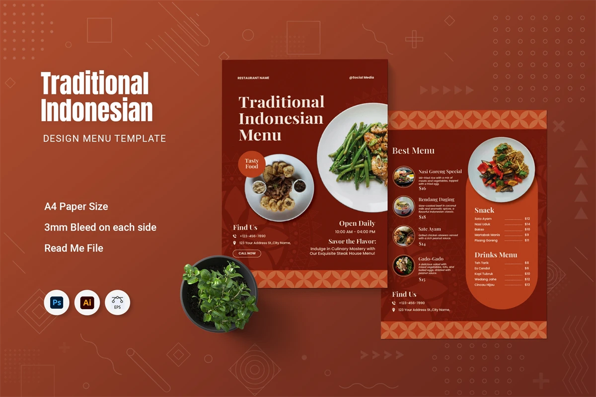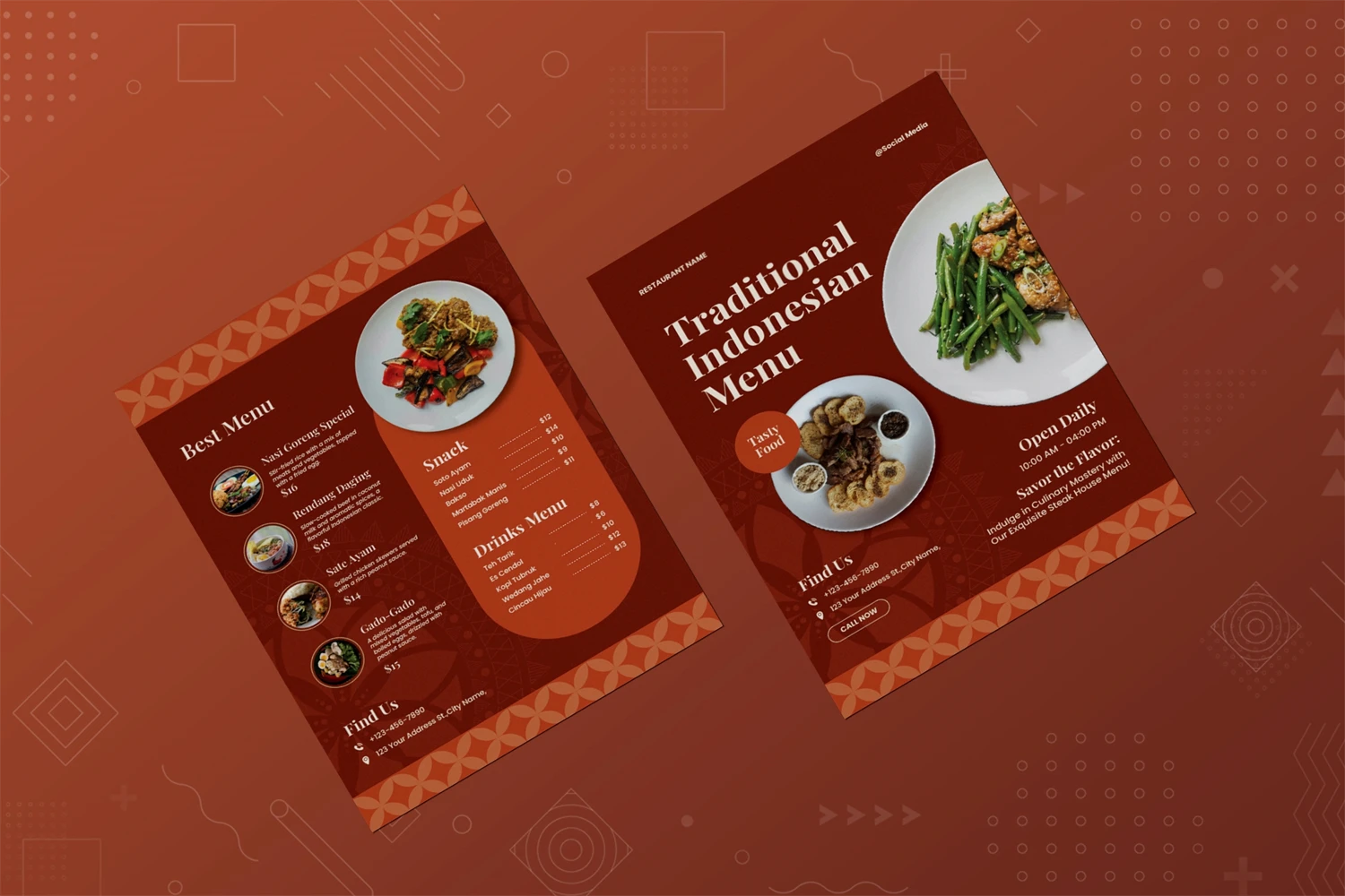 Utilizing enchanting imagery and versatile ordering options, you possess the capability to construct a menu that is equally unforgettable as the cuisine you provide. Let's generate a positive initial impact by selecting our template for your menu.