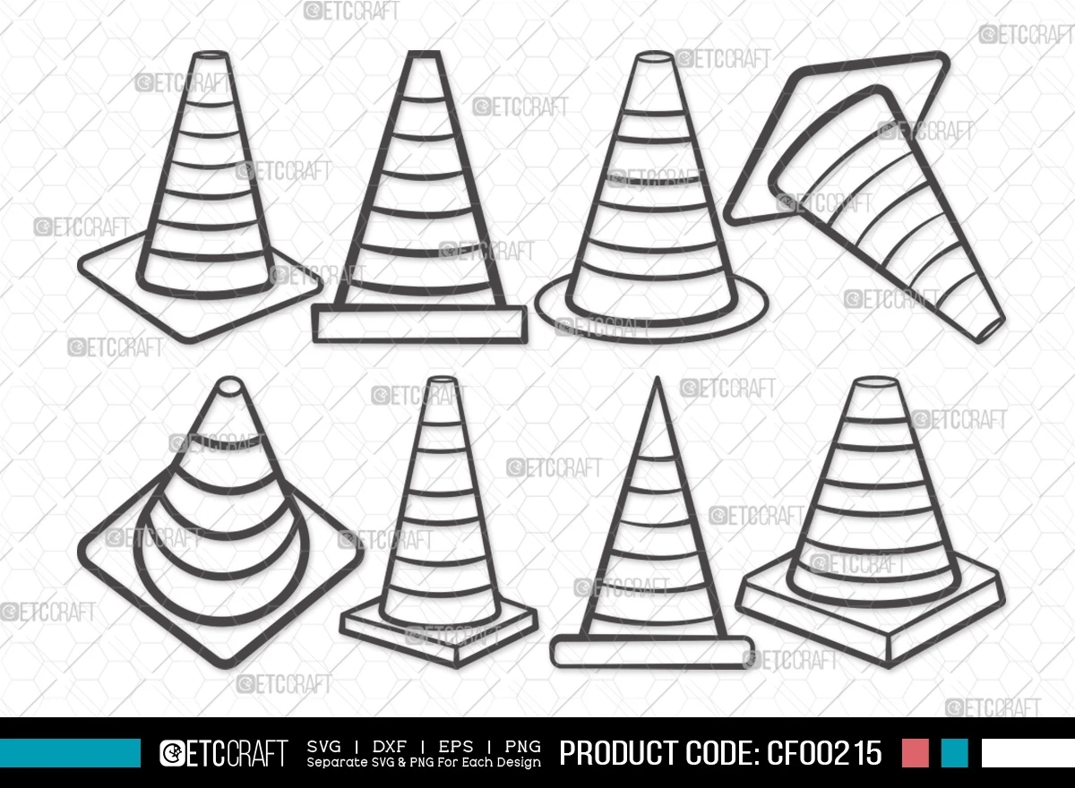 Elevate your creative projects with our Traffic Cones Outline Construction Hazard Sign Road Safety Cone SVG Cut File Bundle. Whether you're in construction, road safety, or simply looking for versatile design elements, this comprehensive digital collection is an essential addition to your creative toolbox.