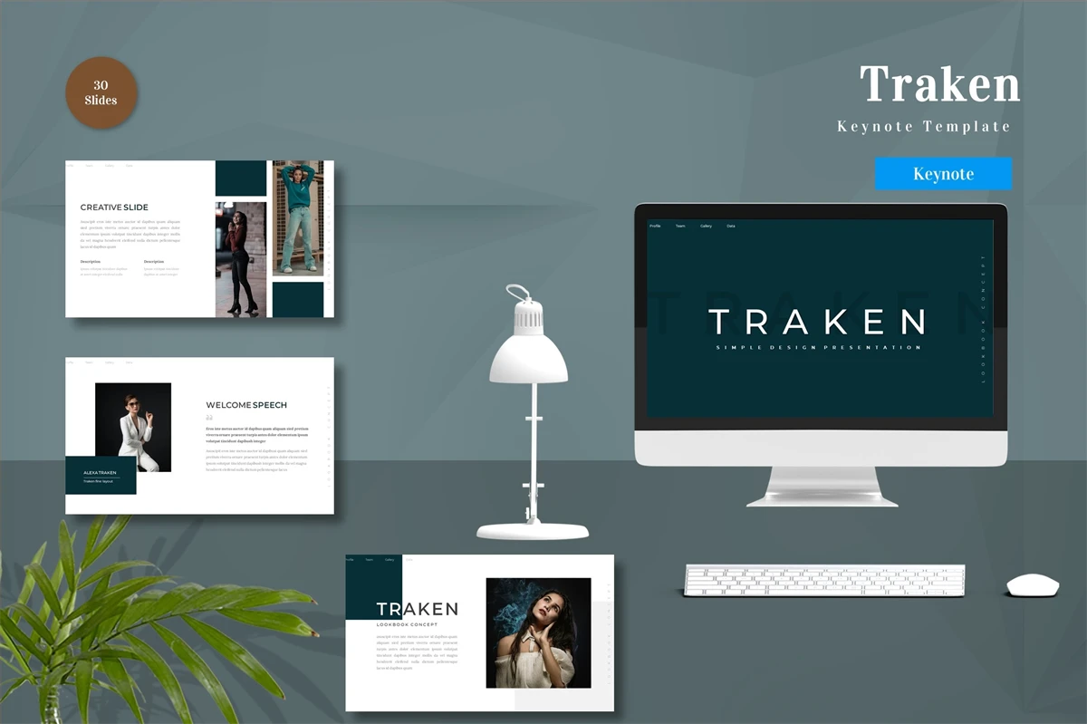 Get it now! **Traken - Keynote Template** for All Business and Personal Needs All elements on this template are editable; input your content, replace your image with a placeholder, change the color, and all presentations include an animated slide to present your slides.