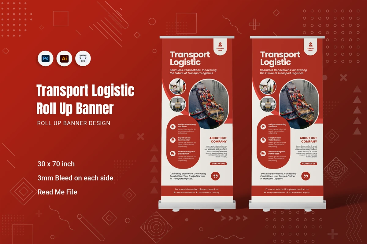 Instantly communicate your brand's through our roll-up banner template. Its standout design is optimized for the impactful presentation of visuals and content alike.