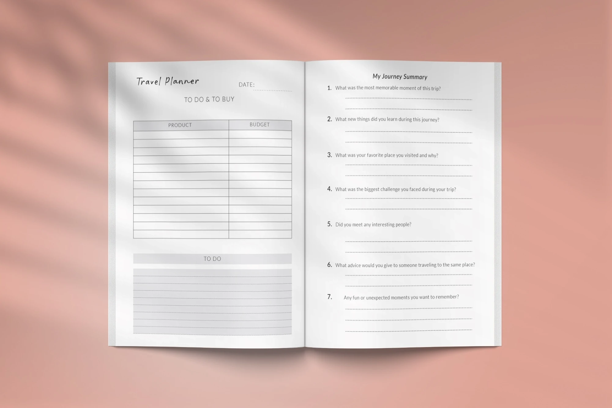 This Travel Journal Log Book with Book Cover is a ready-to-use package perfect for self-publishers, especially on platforms like Amazon KDP or other print-on-demand services. Designed with travelers in mind, this log book offers a clean, well-structured interior and a professionally designed coverideal for quick publishing!