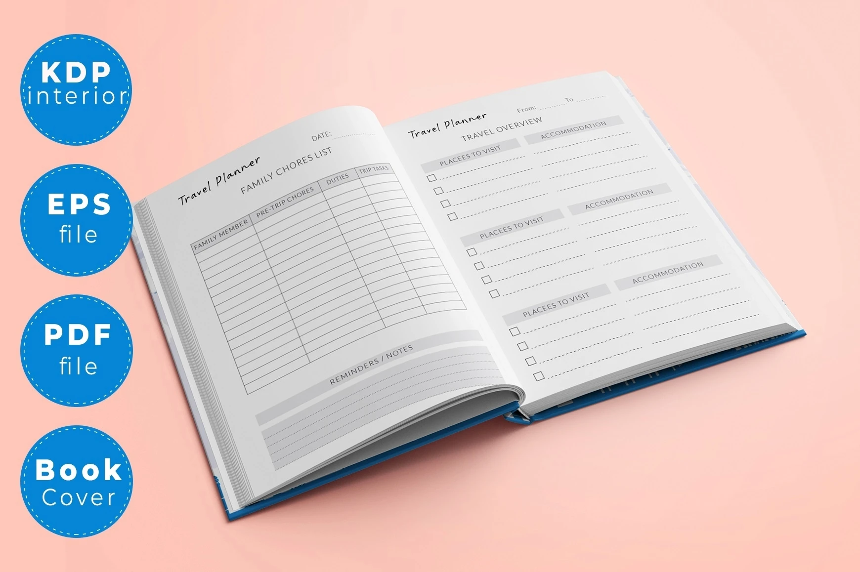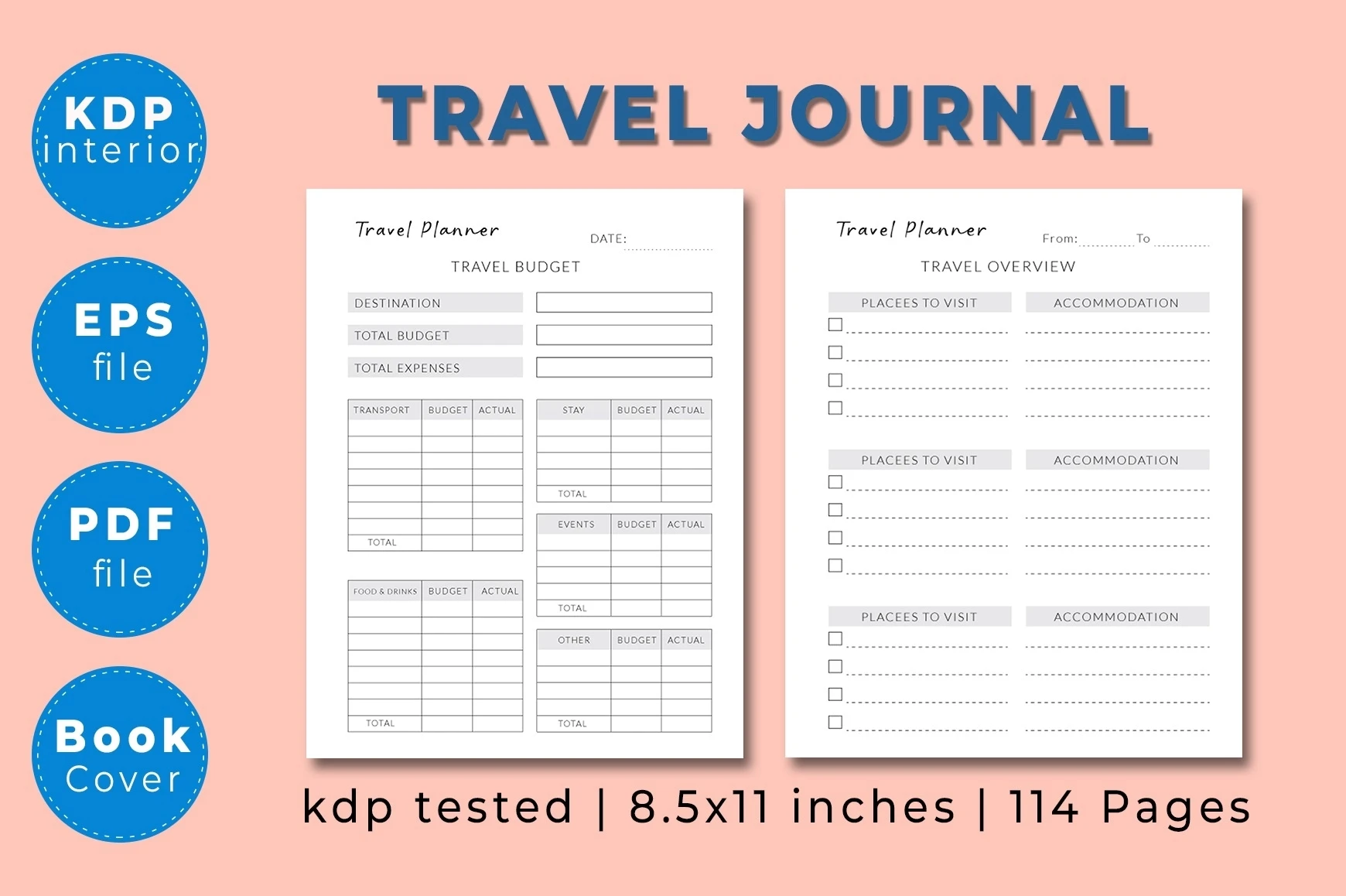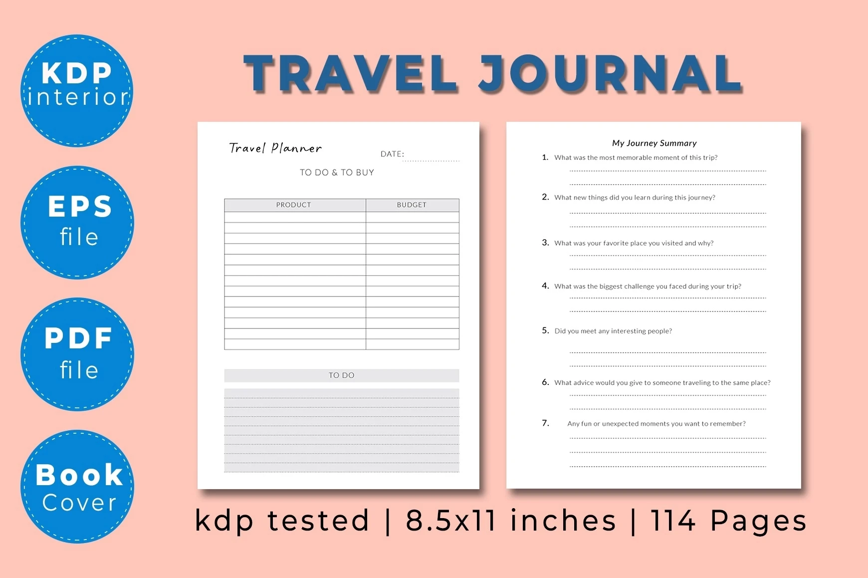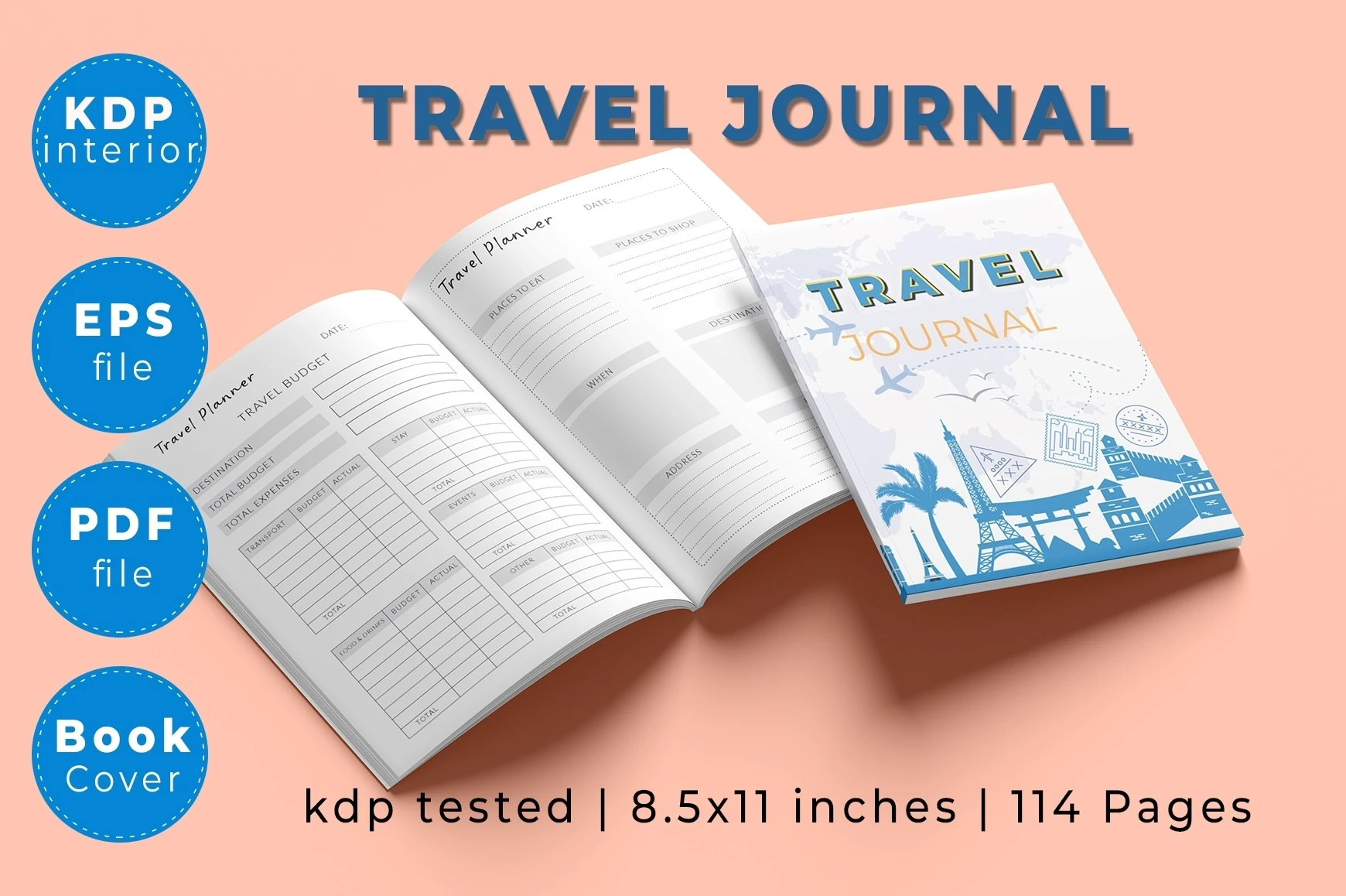 Travel Journal Log Book with Book Cover Printable Interior for KDP & POD