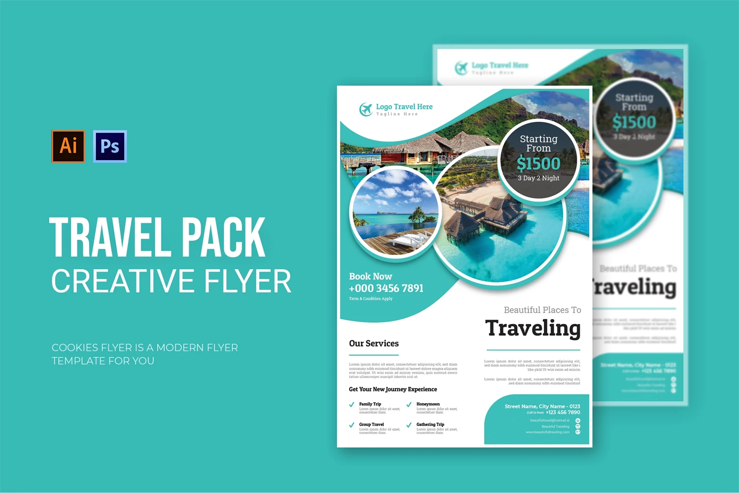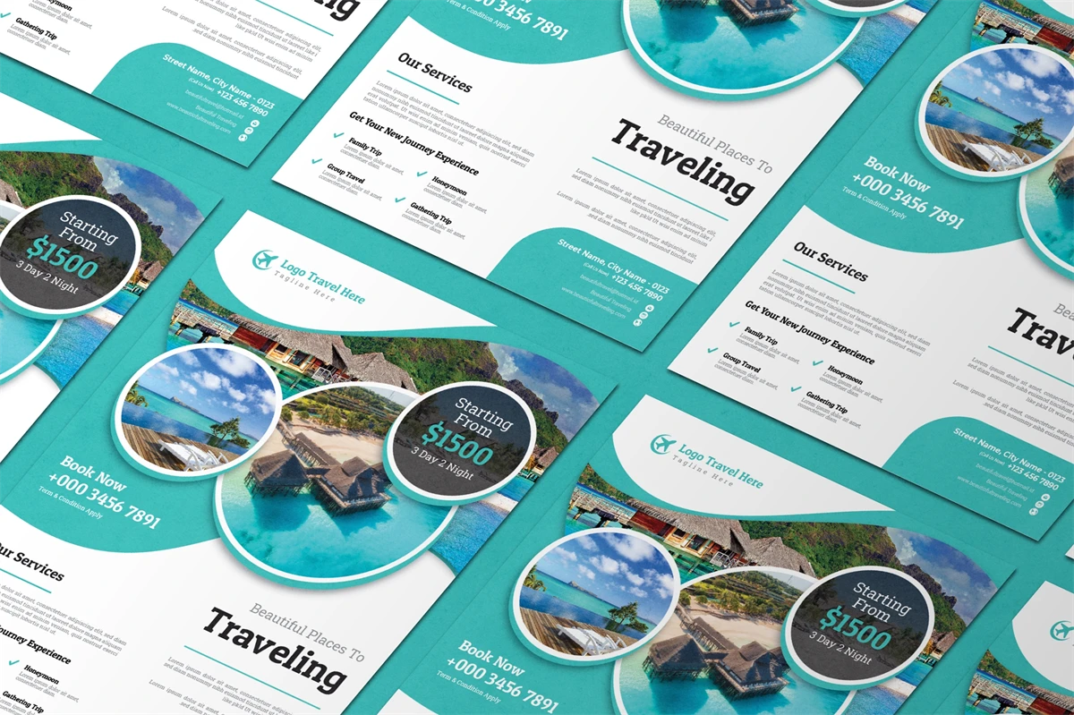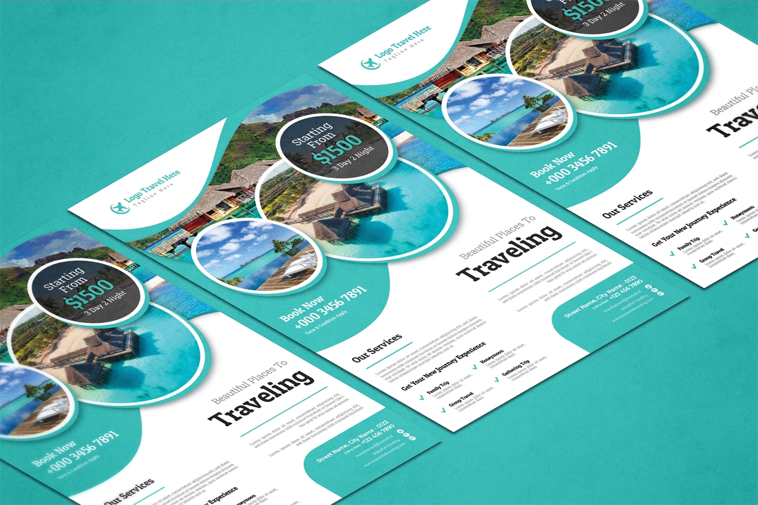 Travel Package - Flyer. This Flyer template is designed for your company's business needs. very clean and elegant, and also easily edited and adjusted to your liking