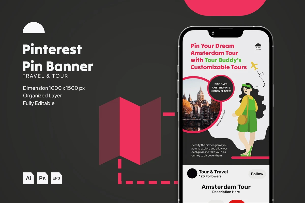 Get it now !, a great Pinterest Pin Template for business and Personal. A very elegant, minimalistic and modern design will help you create a unique atmosphere on your social media networks.