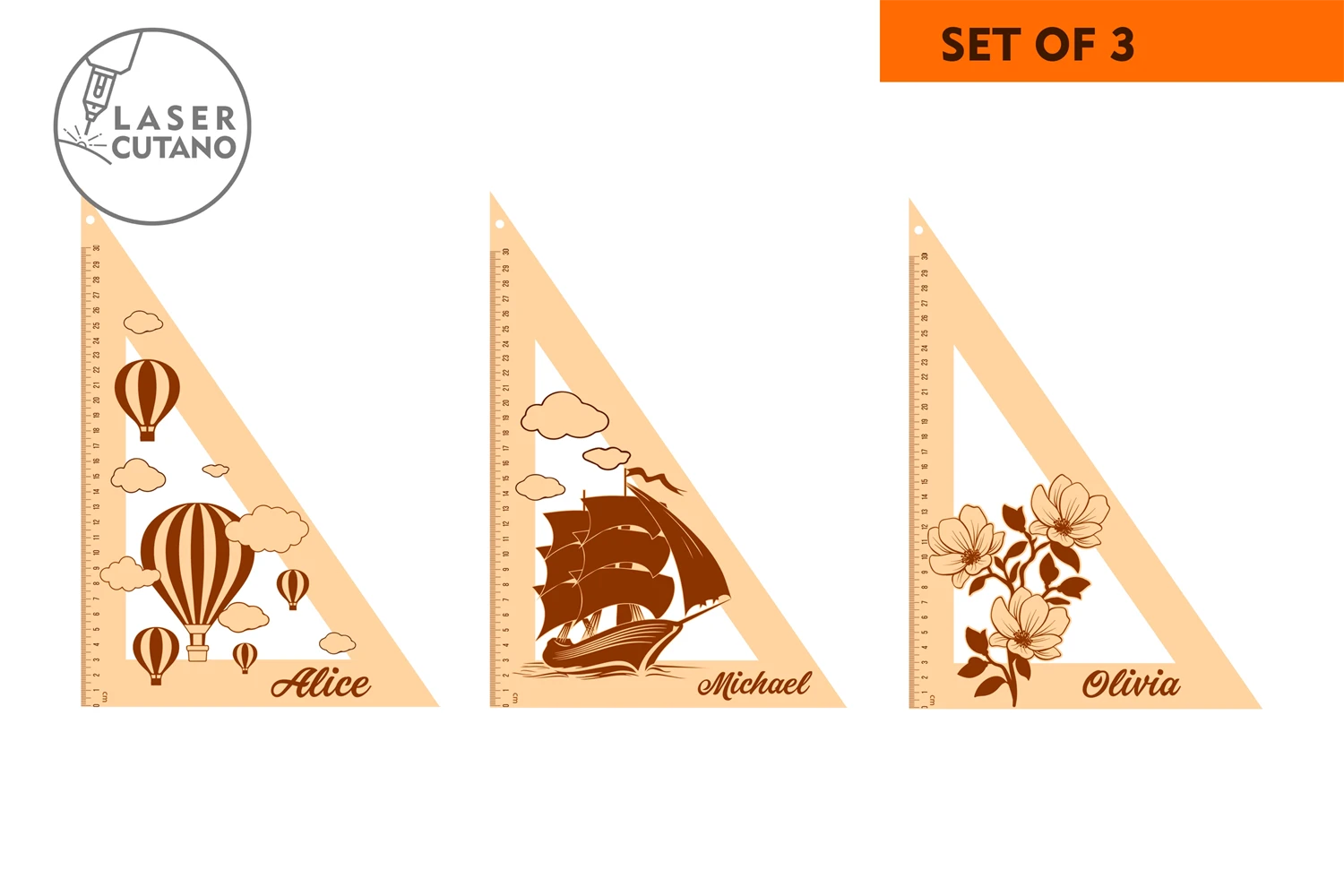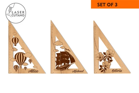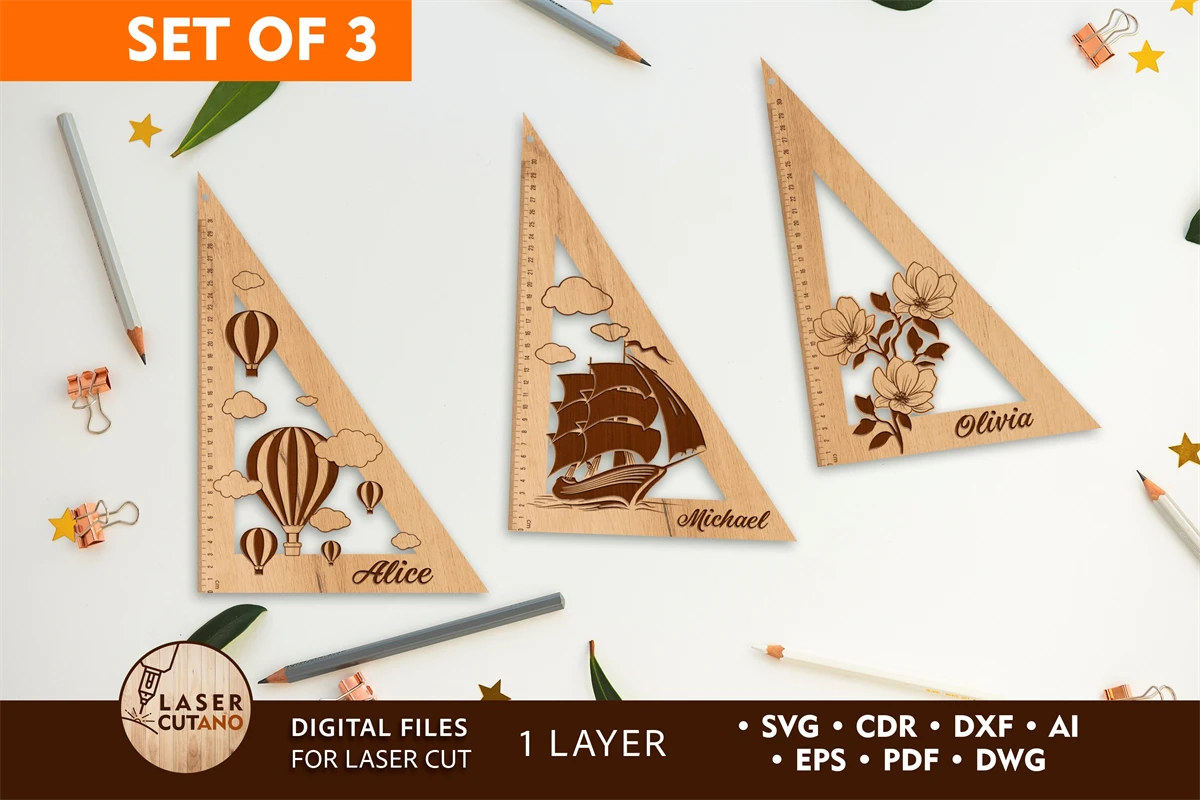 Triangle Rulers Digital multilayer layout files are specially prepared for the laser cut, CNC router machine and other cutting machines.
