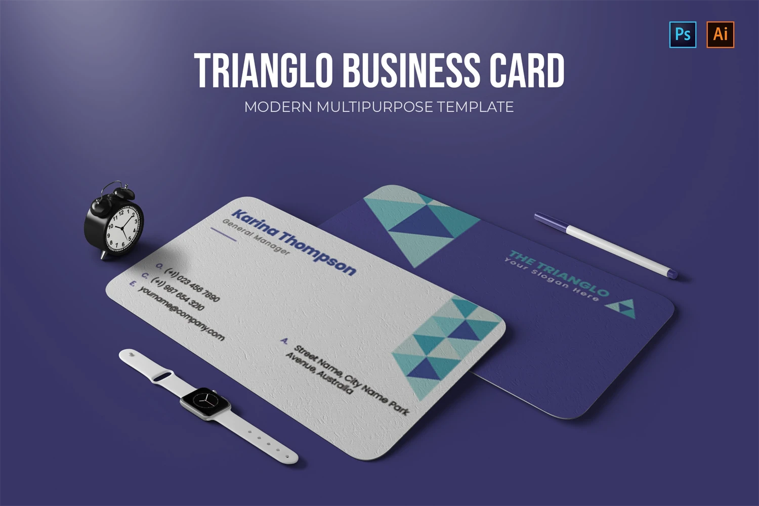 This Trianglo - Business Card make your business cards look professional. You can use this business card for, identity, company business cards, Corporate Business, Creative, Blogs, Photographers, Artists, Designers, etc.