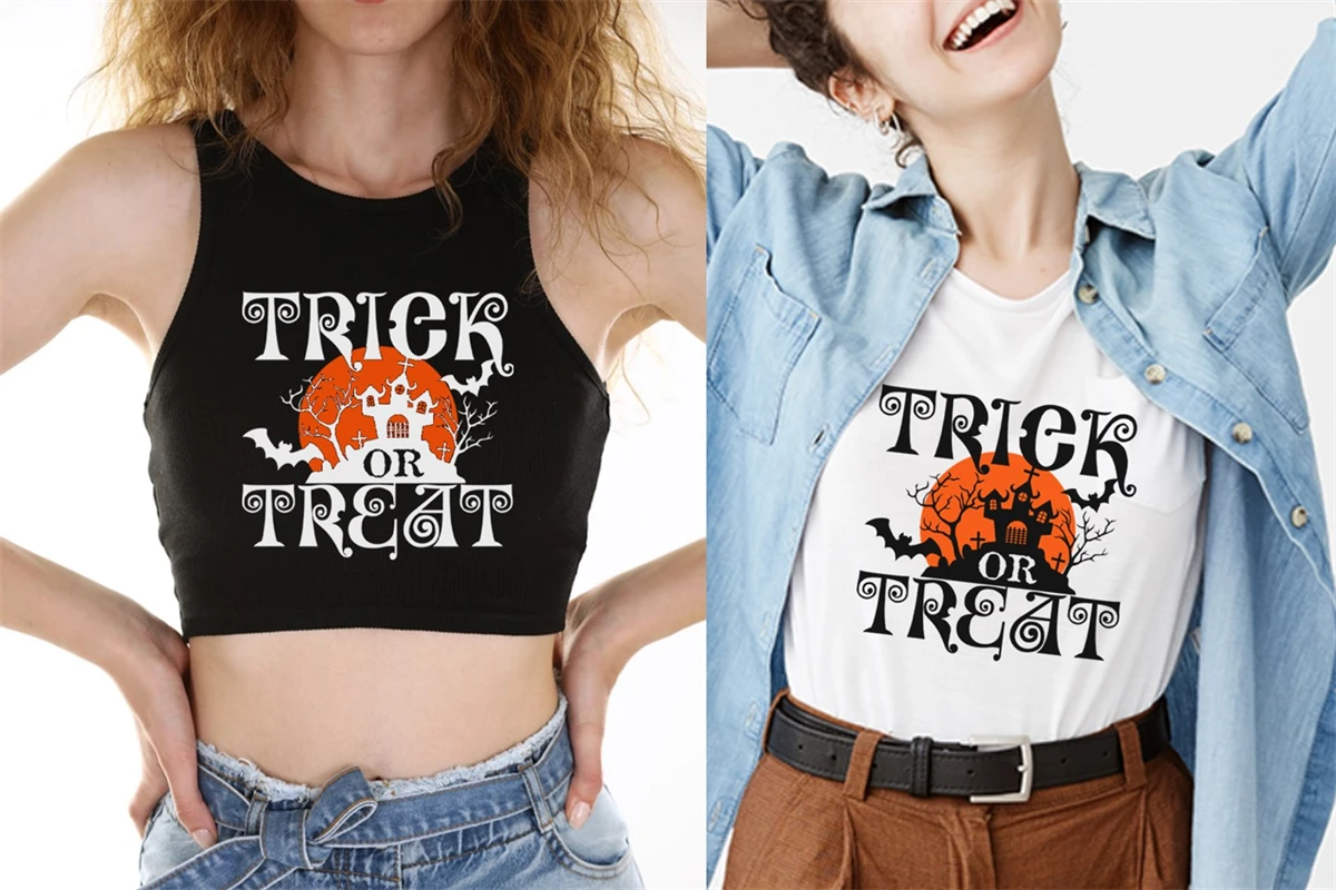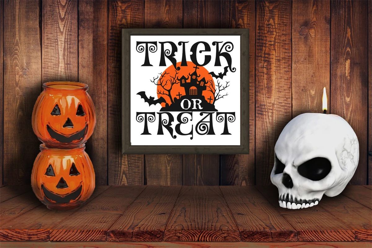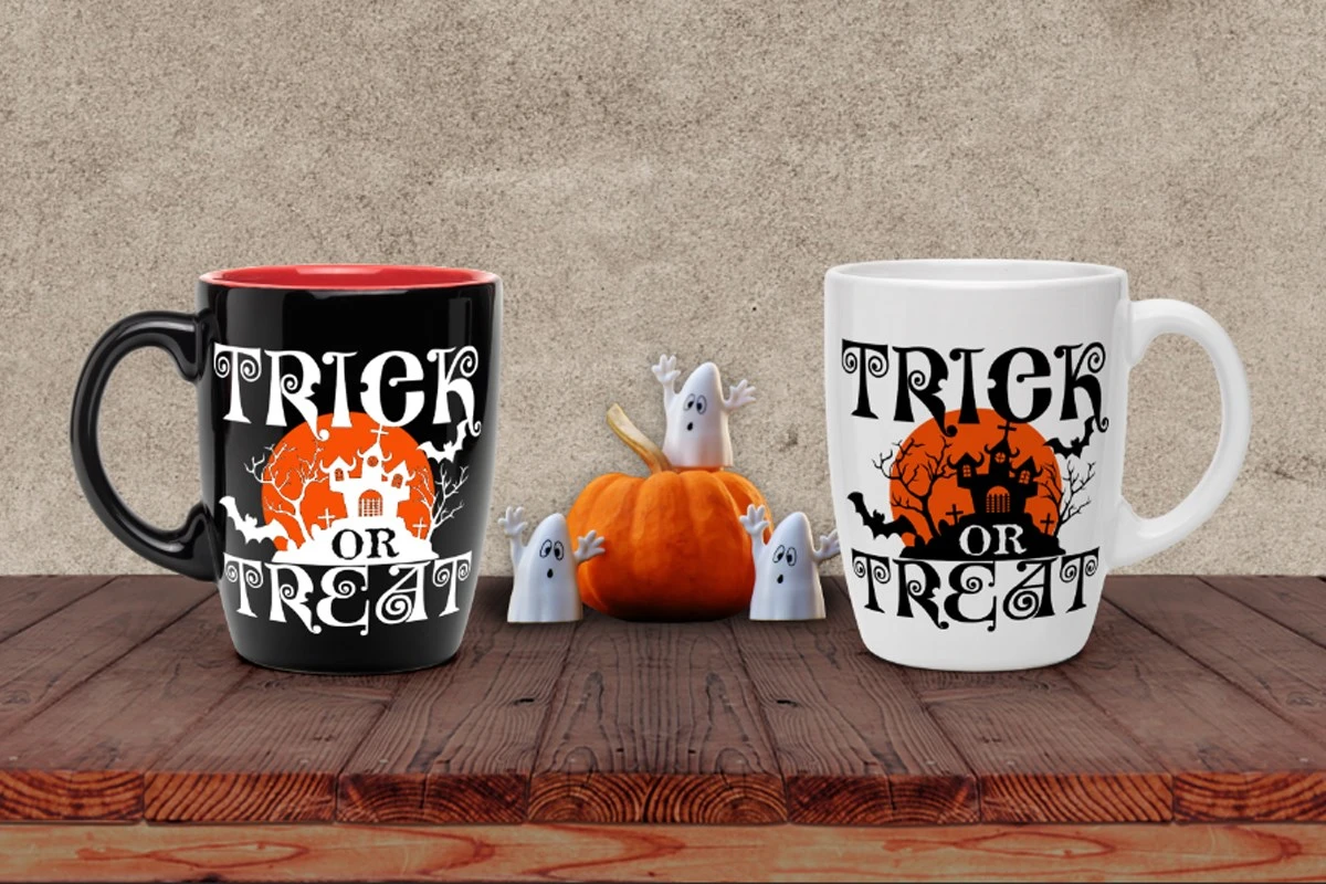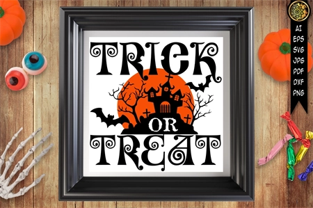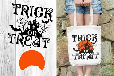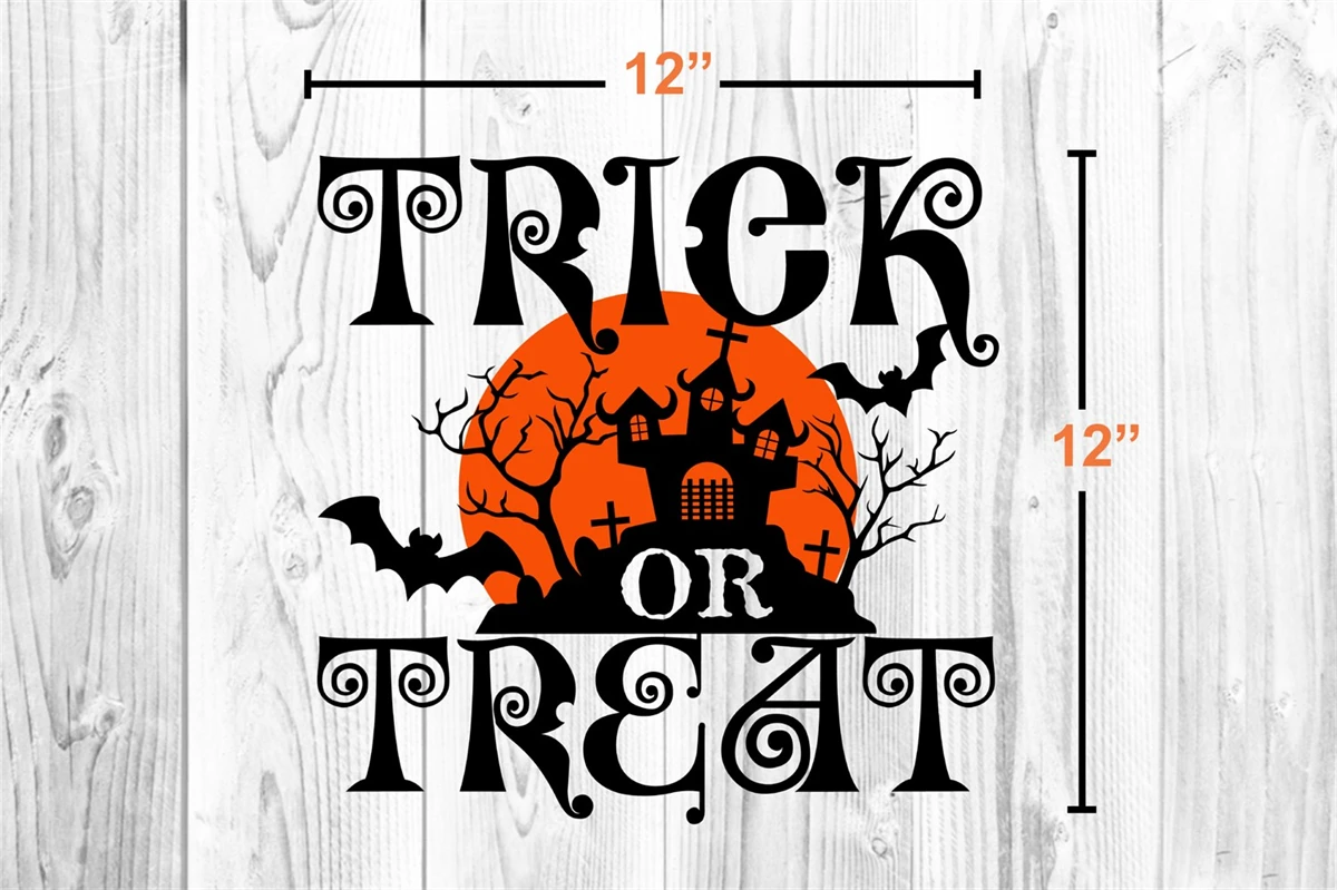 Trick Or Treat SVG Cut Files for your creative DIY projects and Home Decorations. Perfect for vinyl, personalized T-shirts, apparel, cups, stickers, card stock, and other DIY projects. Options are endless! The design comes in BLACK color which can be easily changed to your desired color.