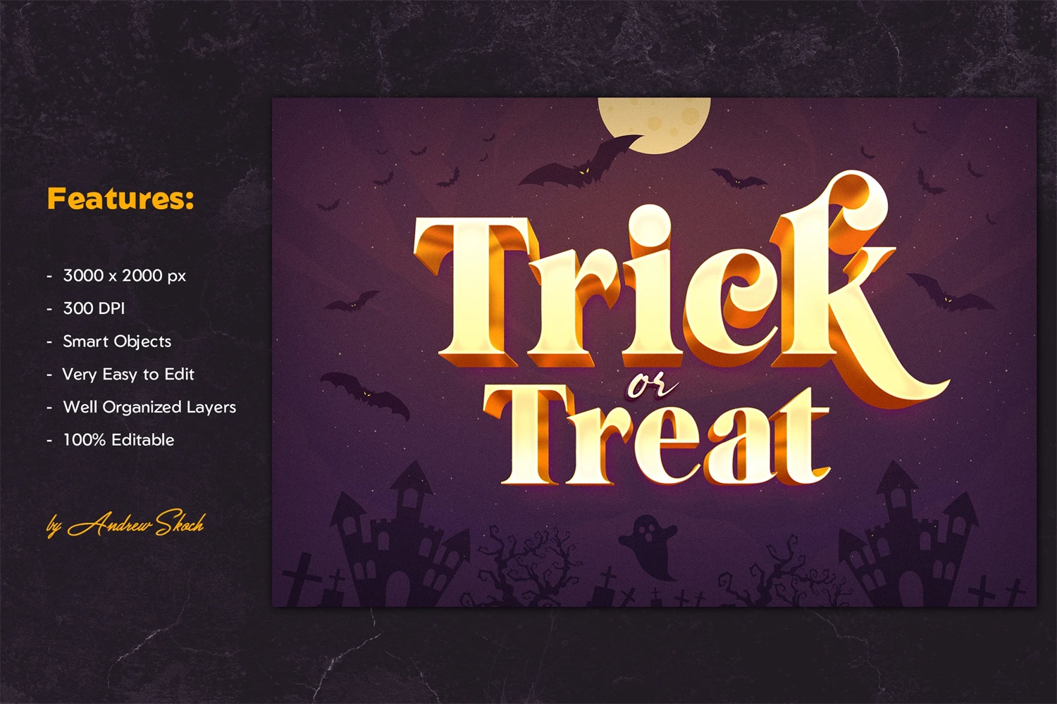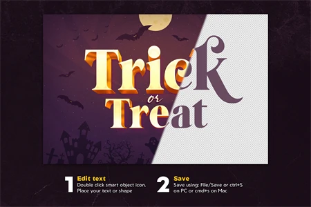 Get into the spooky spirit with the Trick or Treat Text Effect! This Photoshop template transforms your text into eerie Halloween-inspired lettering, perfect for adding a fun, haunted vibe to your designs. The template features a creative trick or treat-style font, capturing the essence of Halloween festivities.
