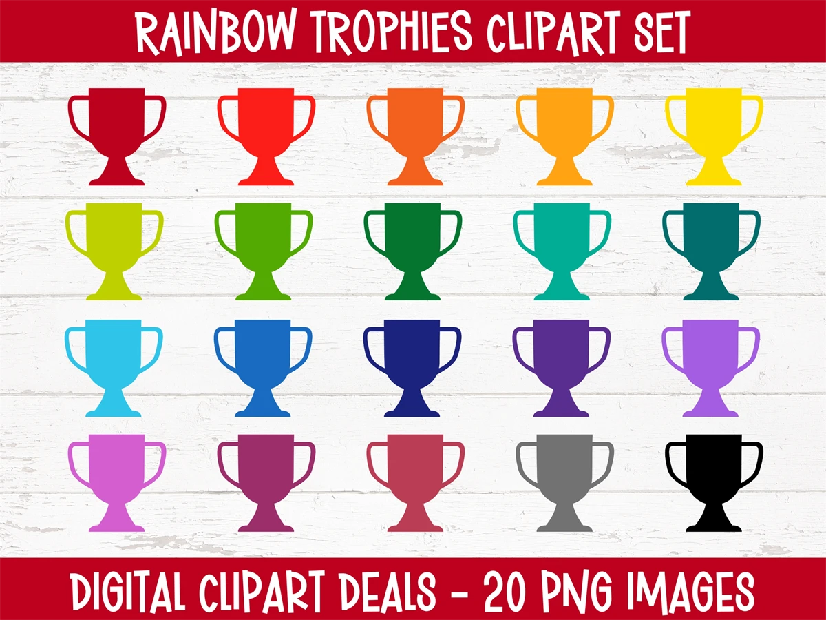 Trophies PNGs in Assorted Rainbow Colors - 20 Colors!