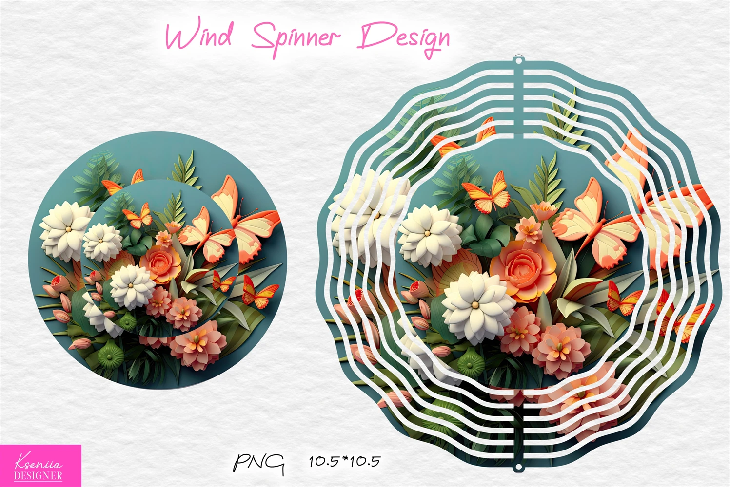 Tropical Butterflies and Flowers Wind Spinner Sublimation