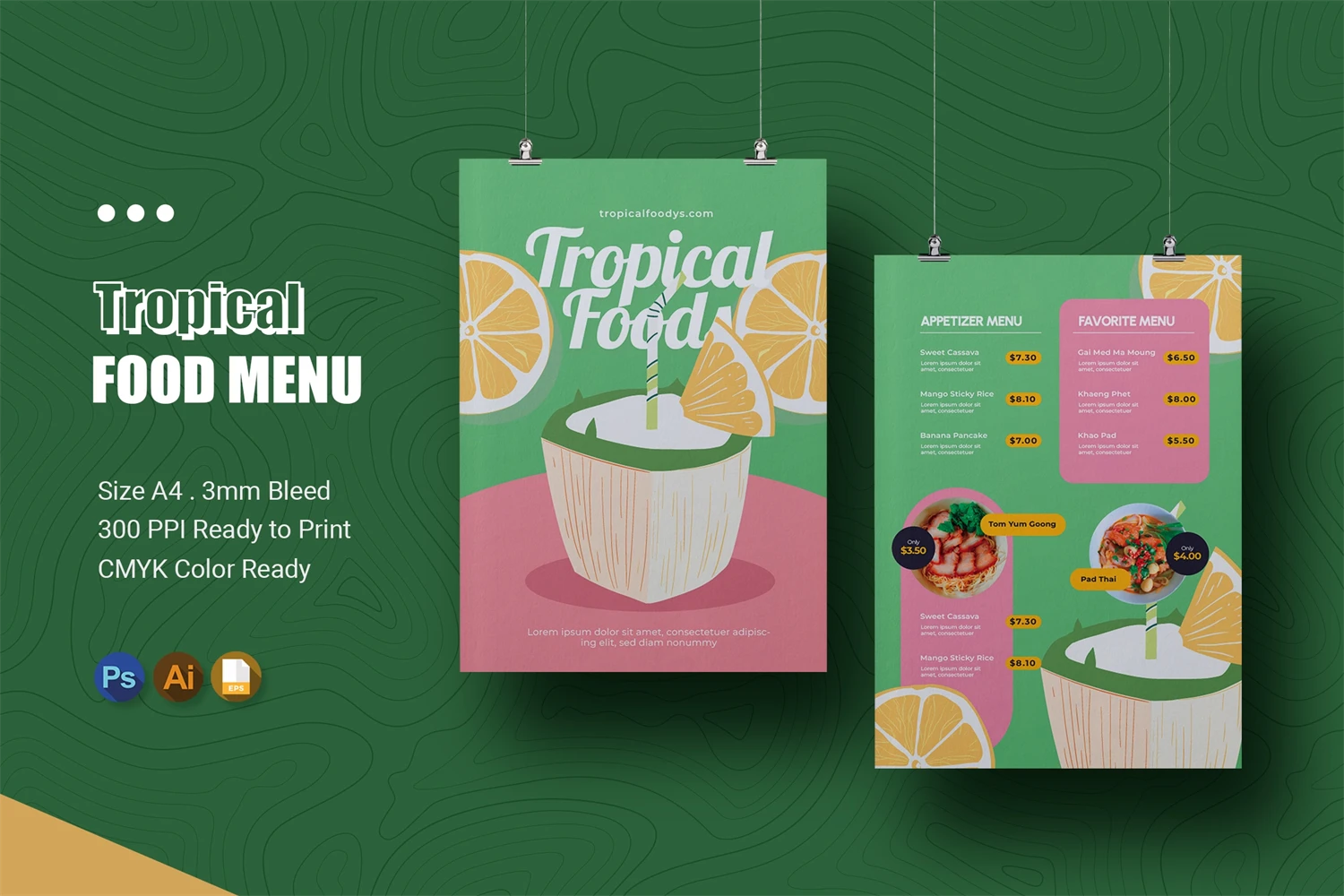 This Menu is great for displaying your restaurant menu in an eye pleasing way. Attracting customers with an easy-to-read restaurant menu certainly makes closing easier, right? easily editable according to your needs, this restaurant menu is perfect for promos, cafes, hotels, resort shops online etc.