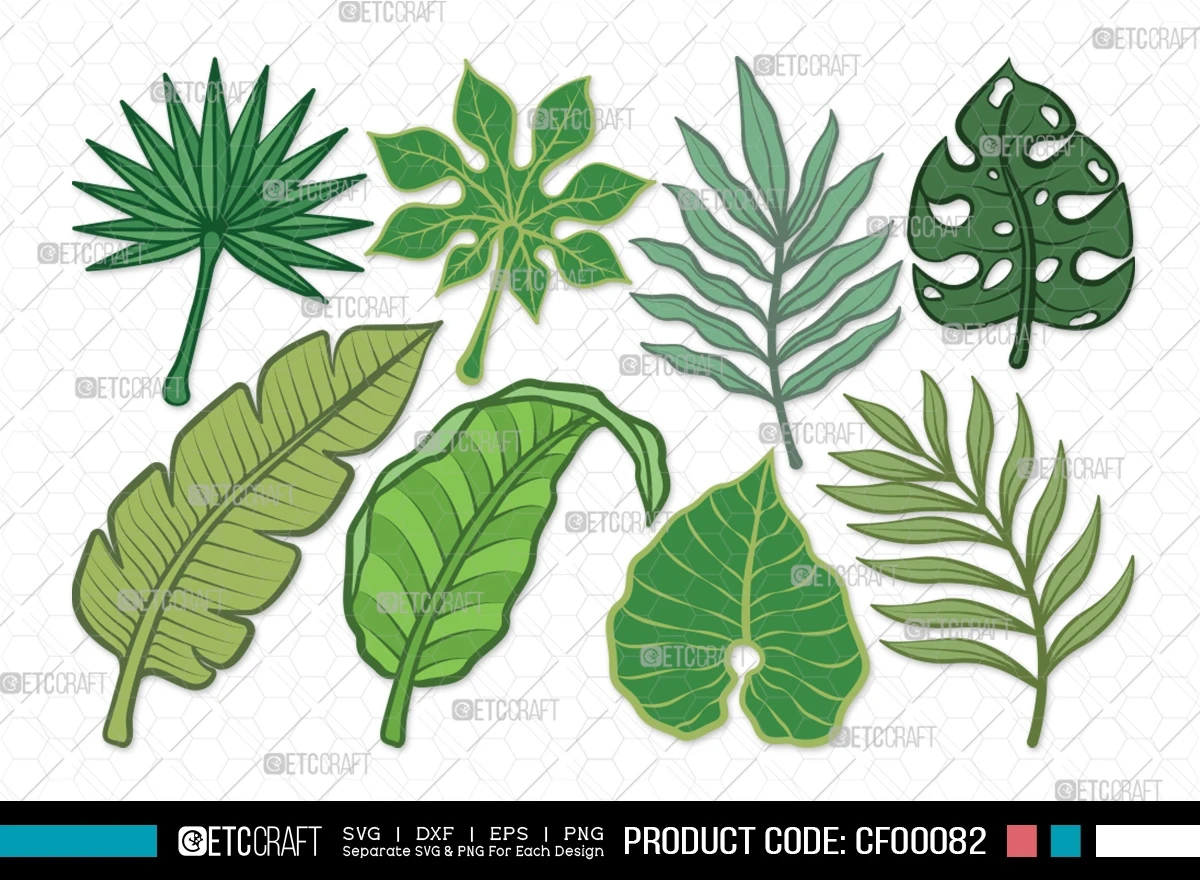 Enhance your creative projects with the lush allure of tropical foliage using our "Tropical Leaf Clipart Monstera & Palm Leaves SVG Cut File". This vibrant bundle encapsulates the essence of the tropics, allowing you to infuse your designs with the beauty of nature.