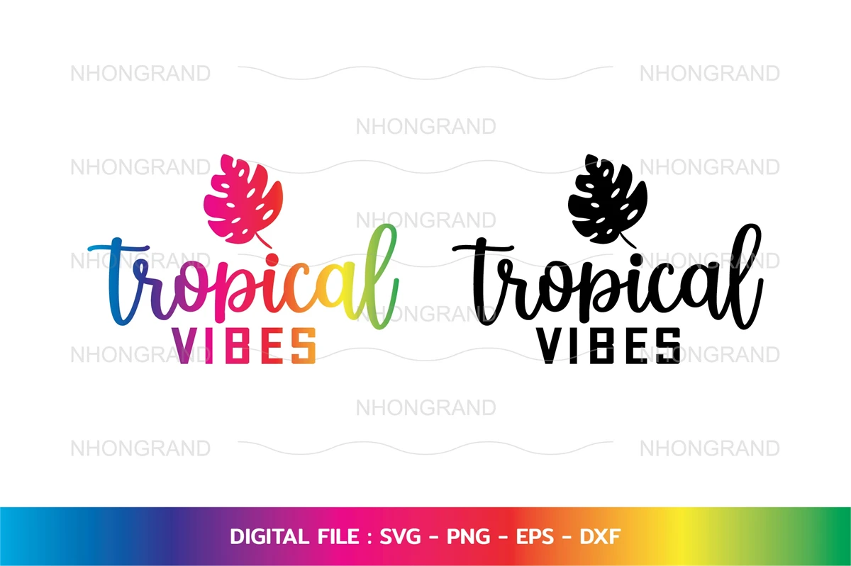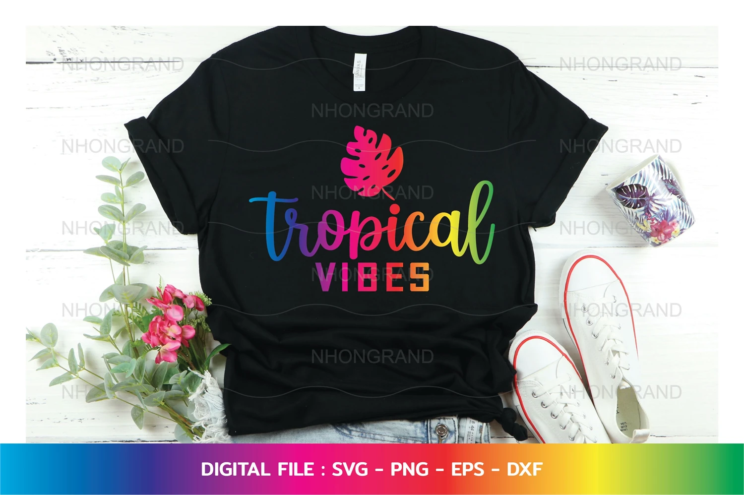 tropical vibes with leaf for summer vacation Svg, t-shirt, Cricut Files, svg, png, eps, dxf, Instant Download
