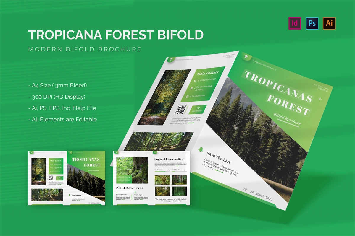 Tropicana Forest - Bifold Brochure We present this Bifold Brochure for you, simple and very elegant, and this Bifold Brochure is suitable for all types of your business, made with Adobe InDesign (INDD), Adobe Photoshop (PSD) and Adobe Illustrator (AI), very easy to customize, Hope you Like it, dont forget to rate, Thanks.