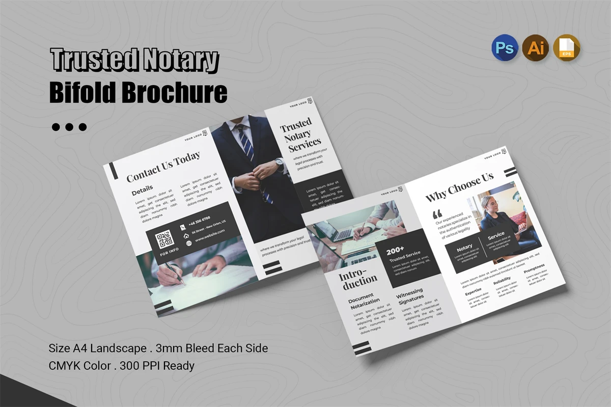 This bifold brochure design template offers a canvas to elegantly present your content, making it perfect for introducing products, showcasing services, or sharing valuable insights.