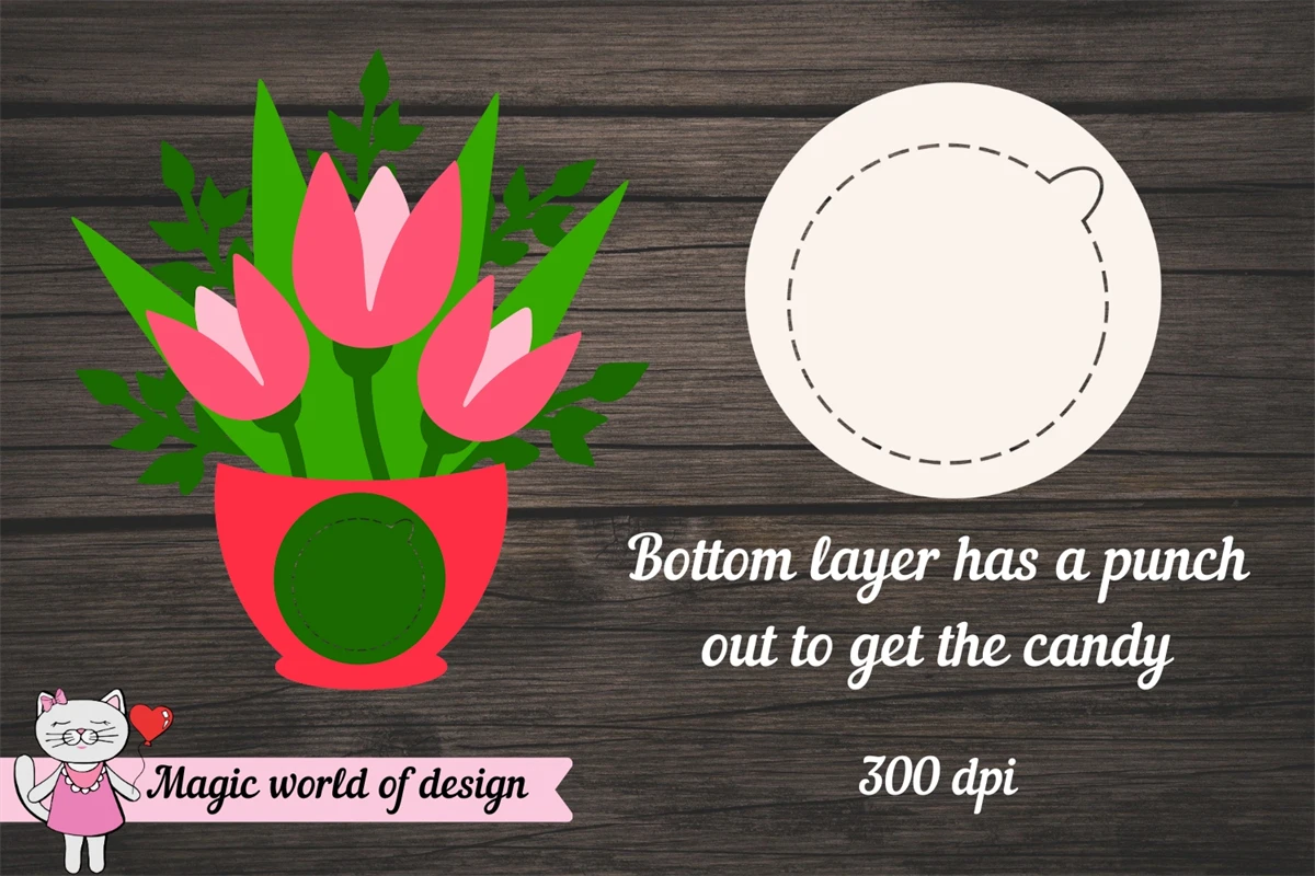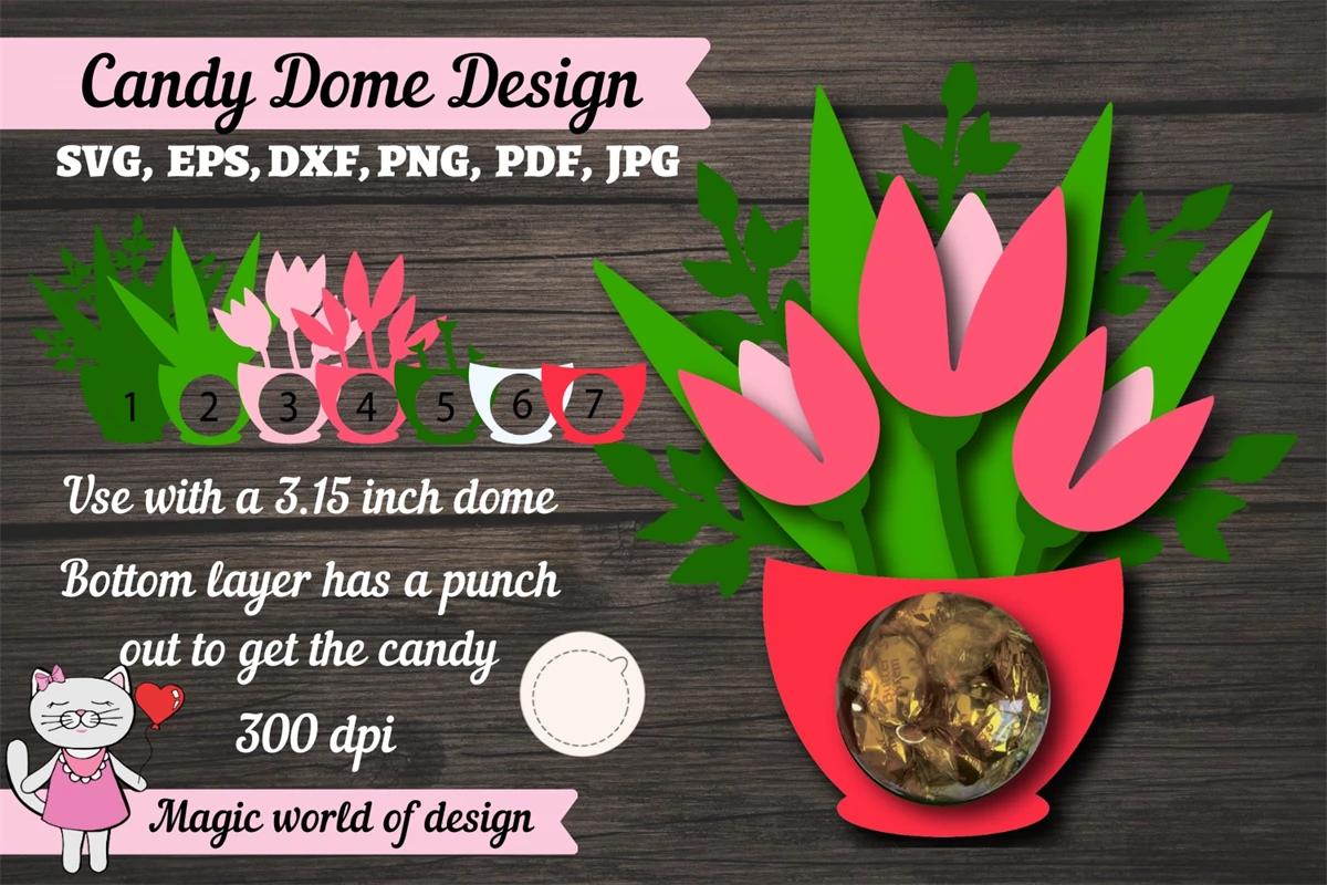 Tulips flowers Dome Candy Holder Svg, 3d svg cut file