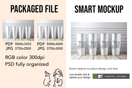 Tumbler mockup with Photoshop (PSD) template for drawing design, pattern, svg, art and graphic designs.
