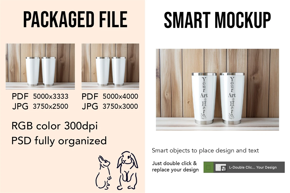 Tumbler mockup with Photoshop (PSD) template for drawing design, pattern, svg, art and graphic designs.