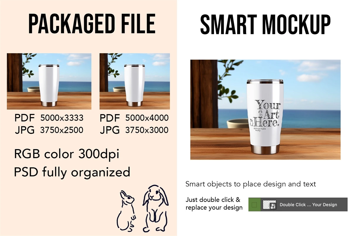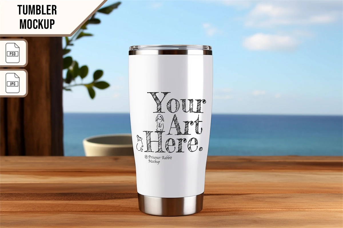 Tumbler mockup with Photoshop (PSD) template for drawing design, pattern, svg, art and graphic designs.