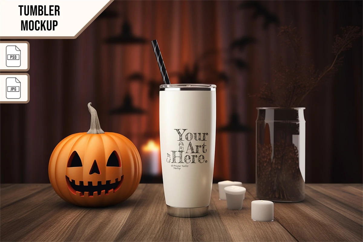 Tumbler mockup with Photoshop (PSD) template for drawing design, pattern, svg, art and graphic designs.