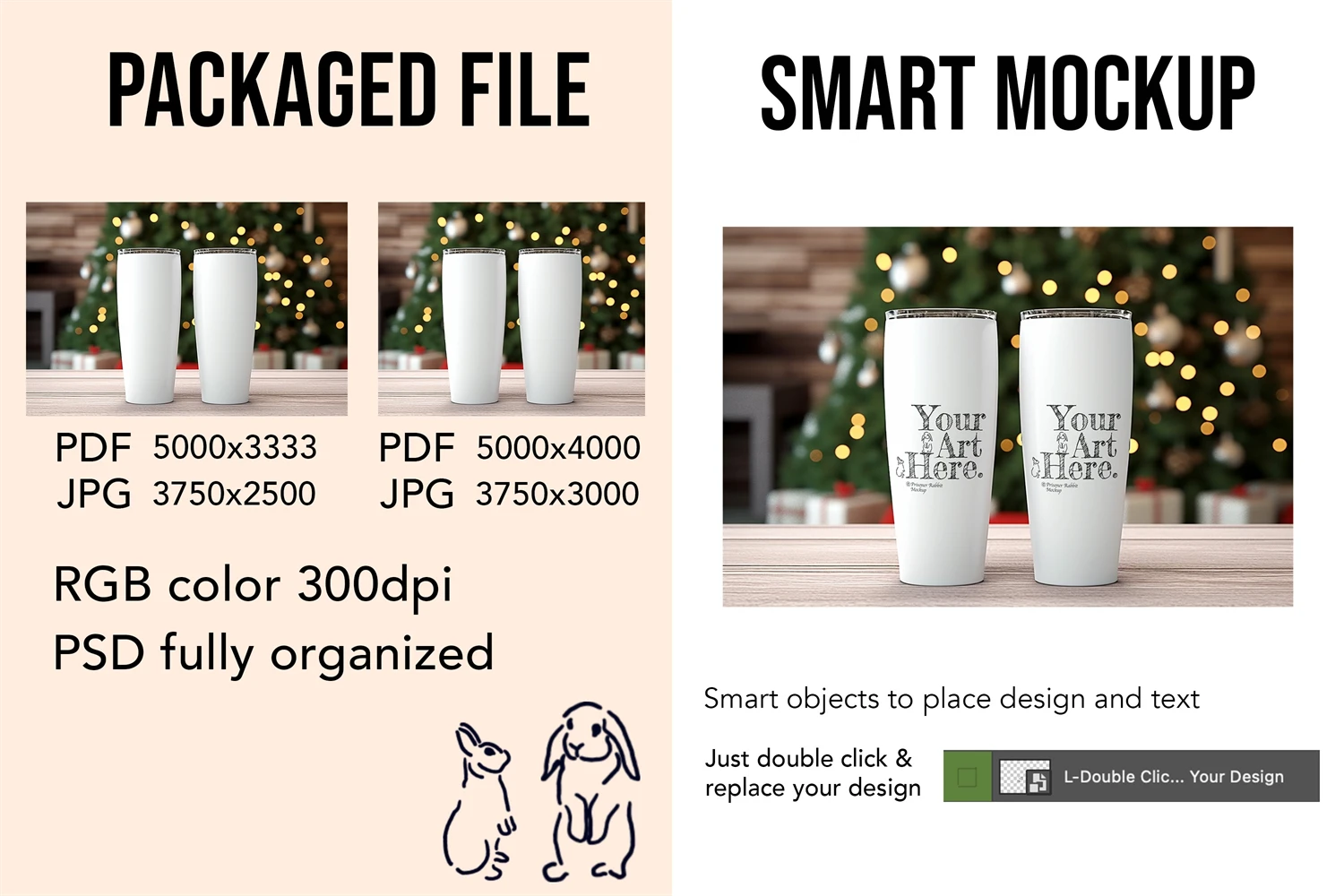 Tumbler mockup with Photoshop (PSD) template for drawing design, pattern, svg, art and graphic designs.