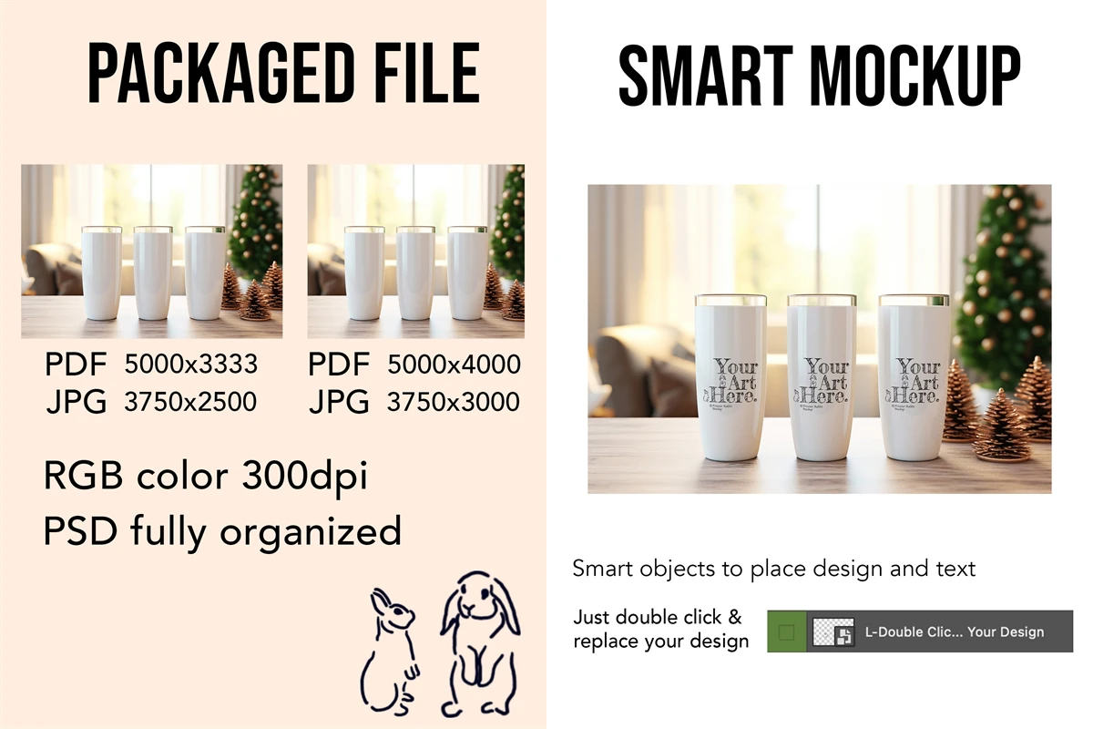 Tumbler mockup with Photoshop (PSD) template for drawing design, pattern, svg, art and graphic designs.