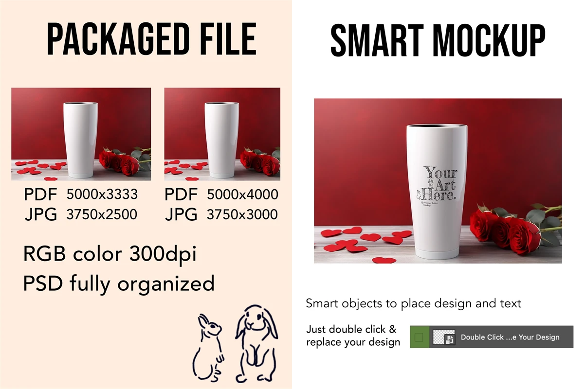 Tumbler mockup with Photoshop (PSD) template for drawing design, pattern, svg, art and graphic designs.