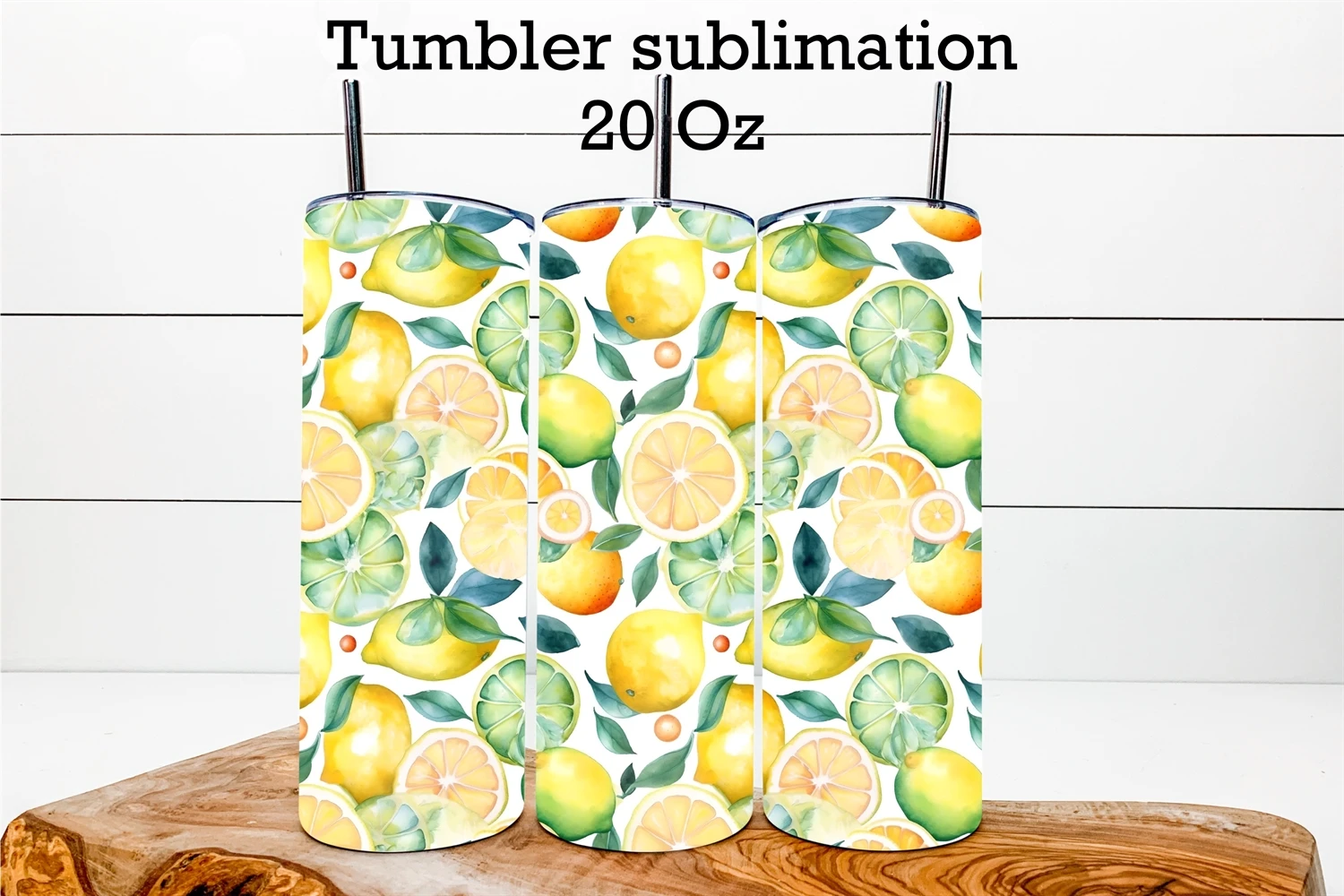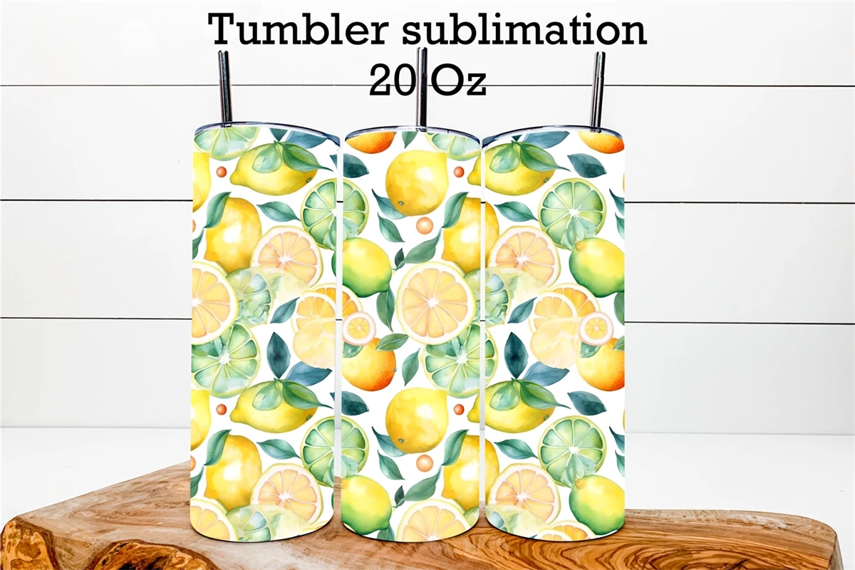 Lemon fruit sublimation tumbler wrap 20 Oz, fruit tumbler design, lemon pattern.