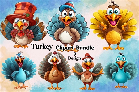 Watercolor Turkey Clipart PNG Bundle
