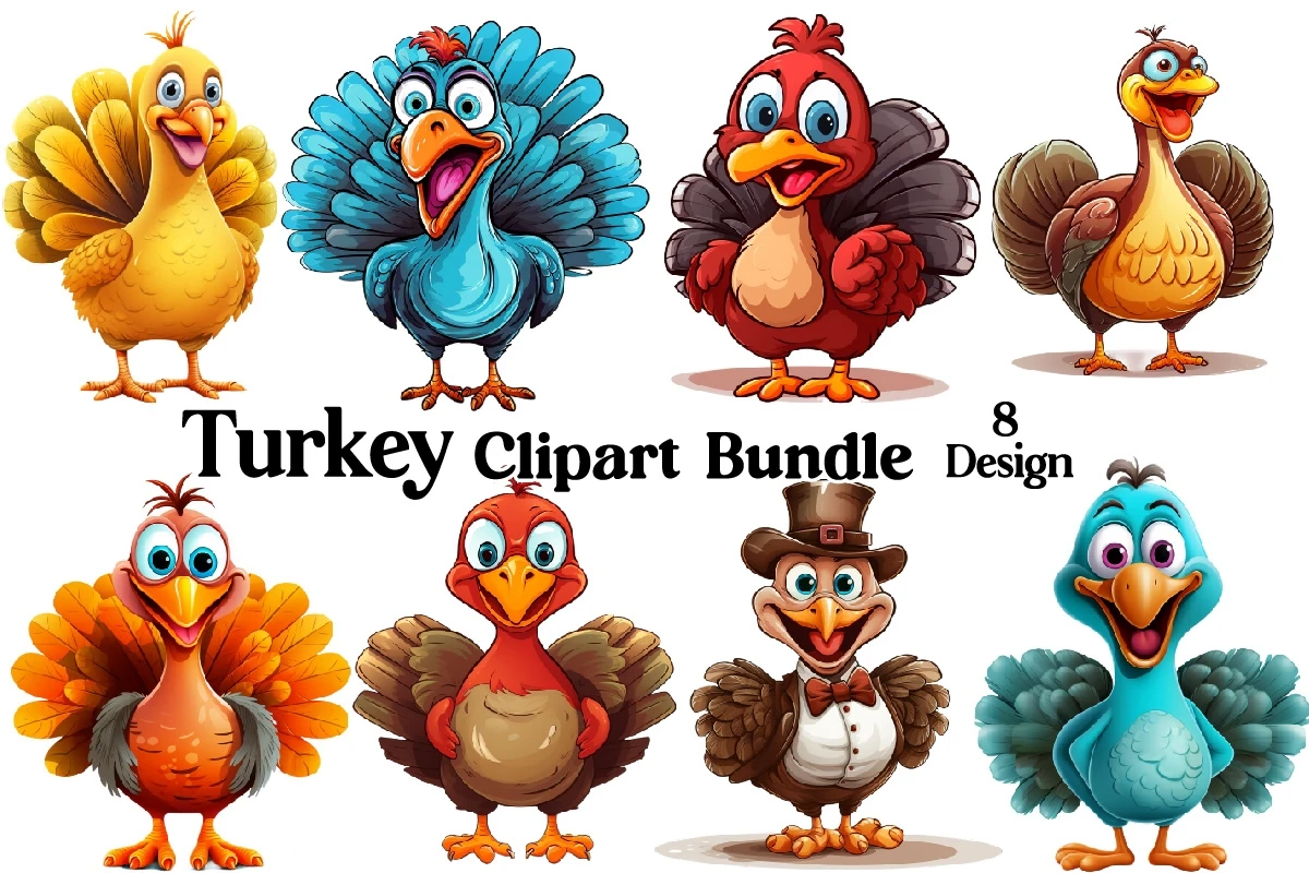 Watercolor Turkey Clipart PNG Bundle