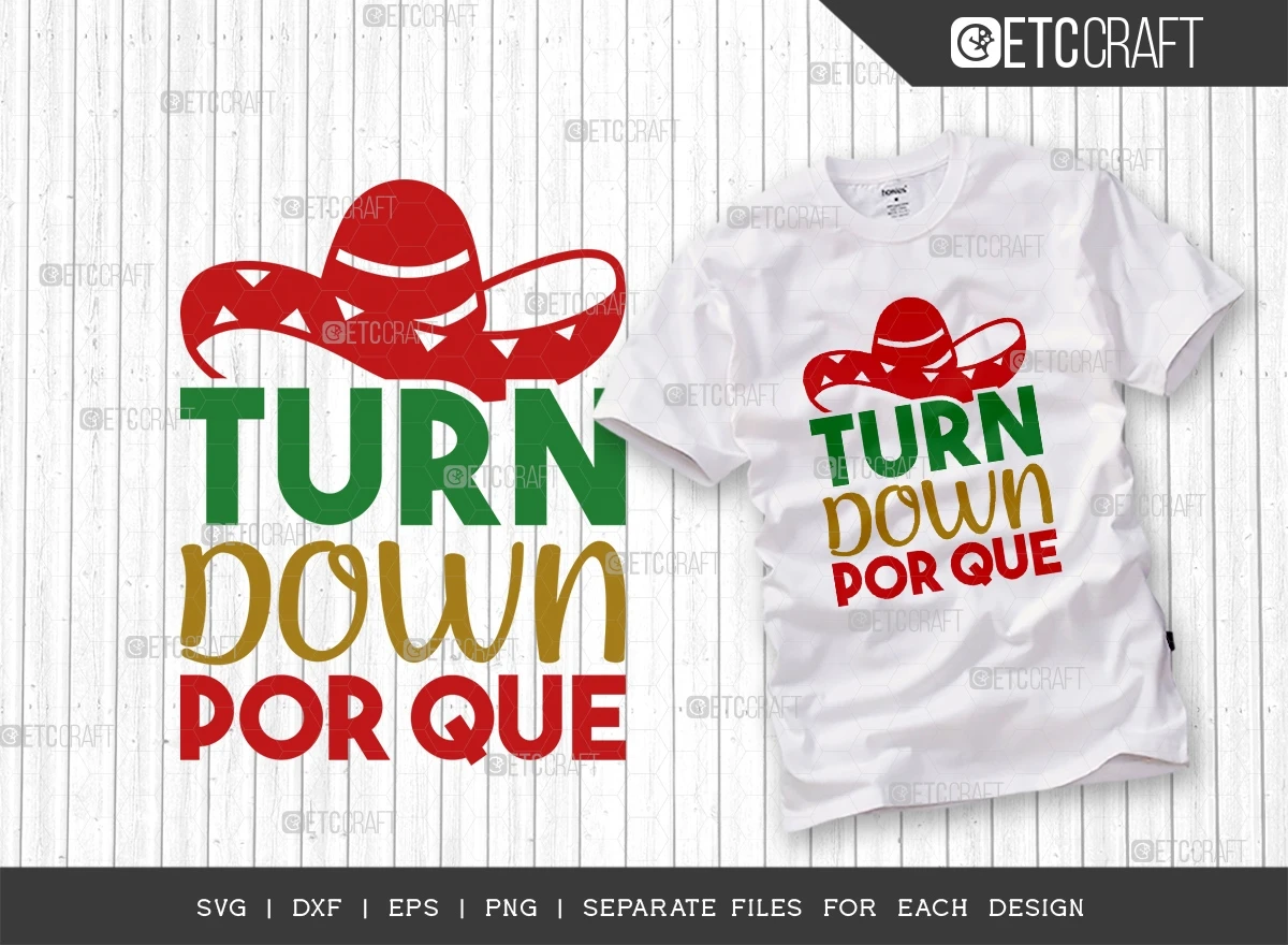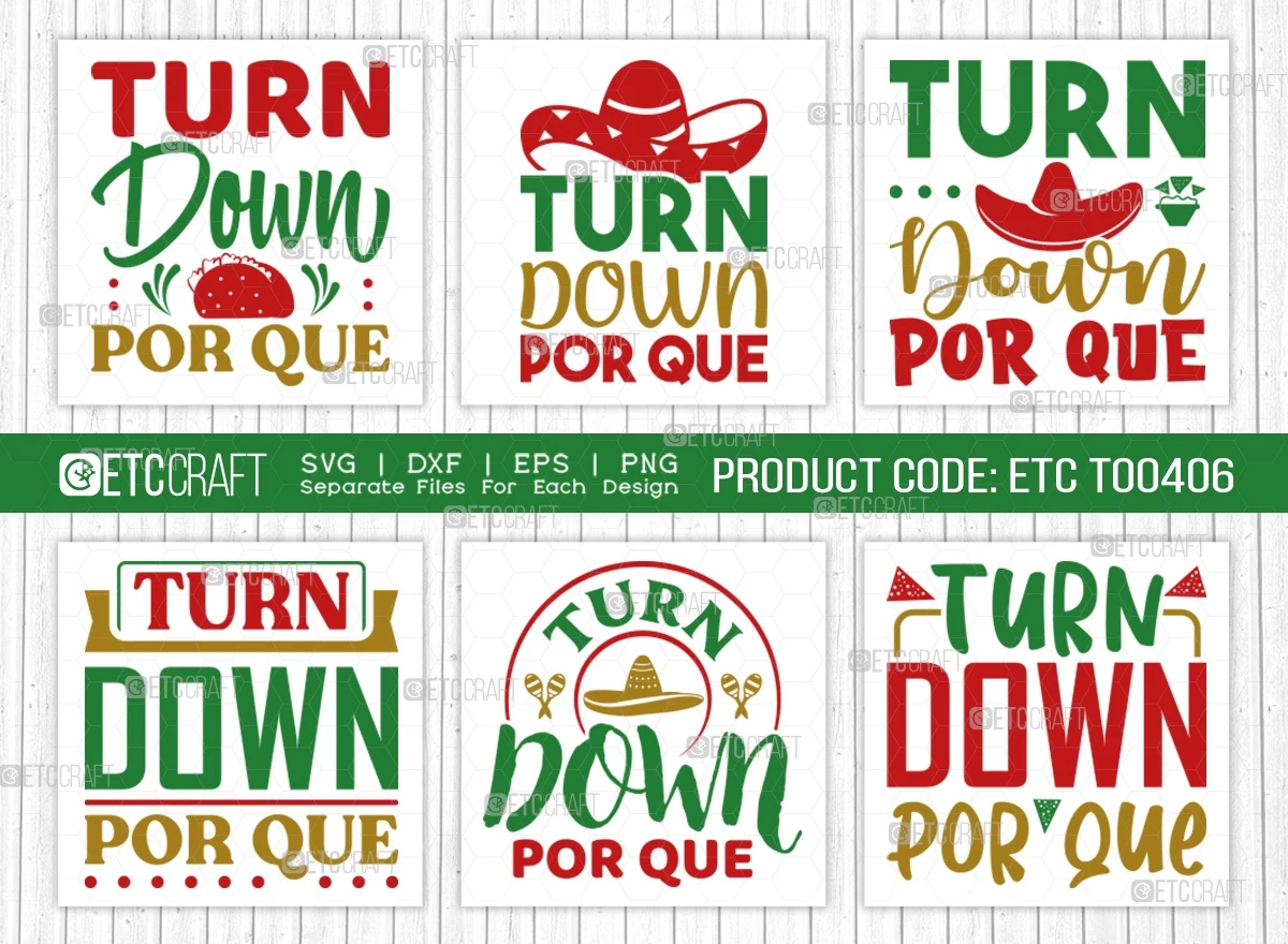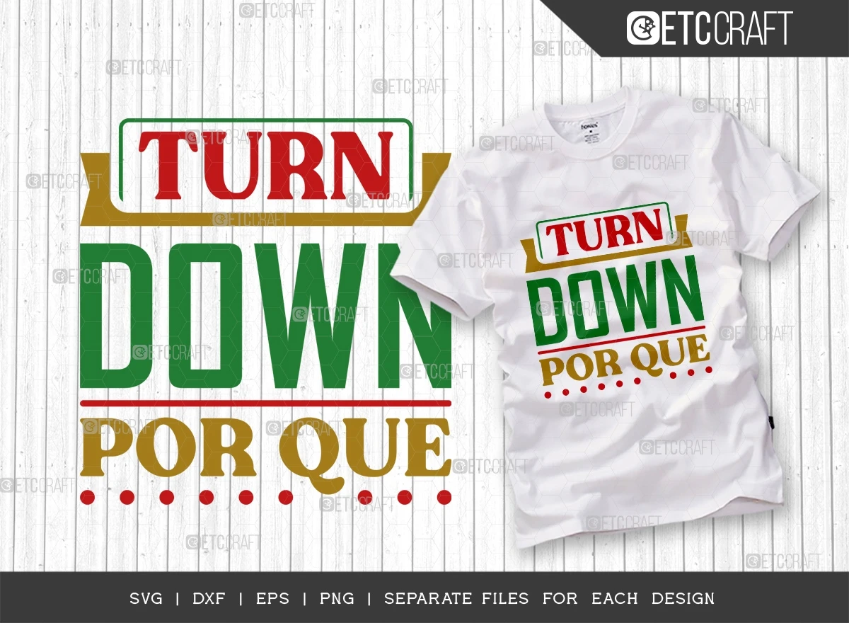 The Turn Down Por Que SVG Bundle goes beyond just t-shirt designs. You can use these SVGs to create a wide range of products, including mugs, posters, greeting cards, stickers, and more. The possibilities are limitless, enabling you to explore your creativity to the fullest.
