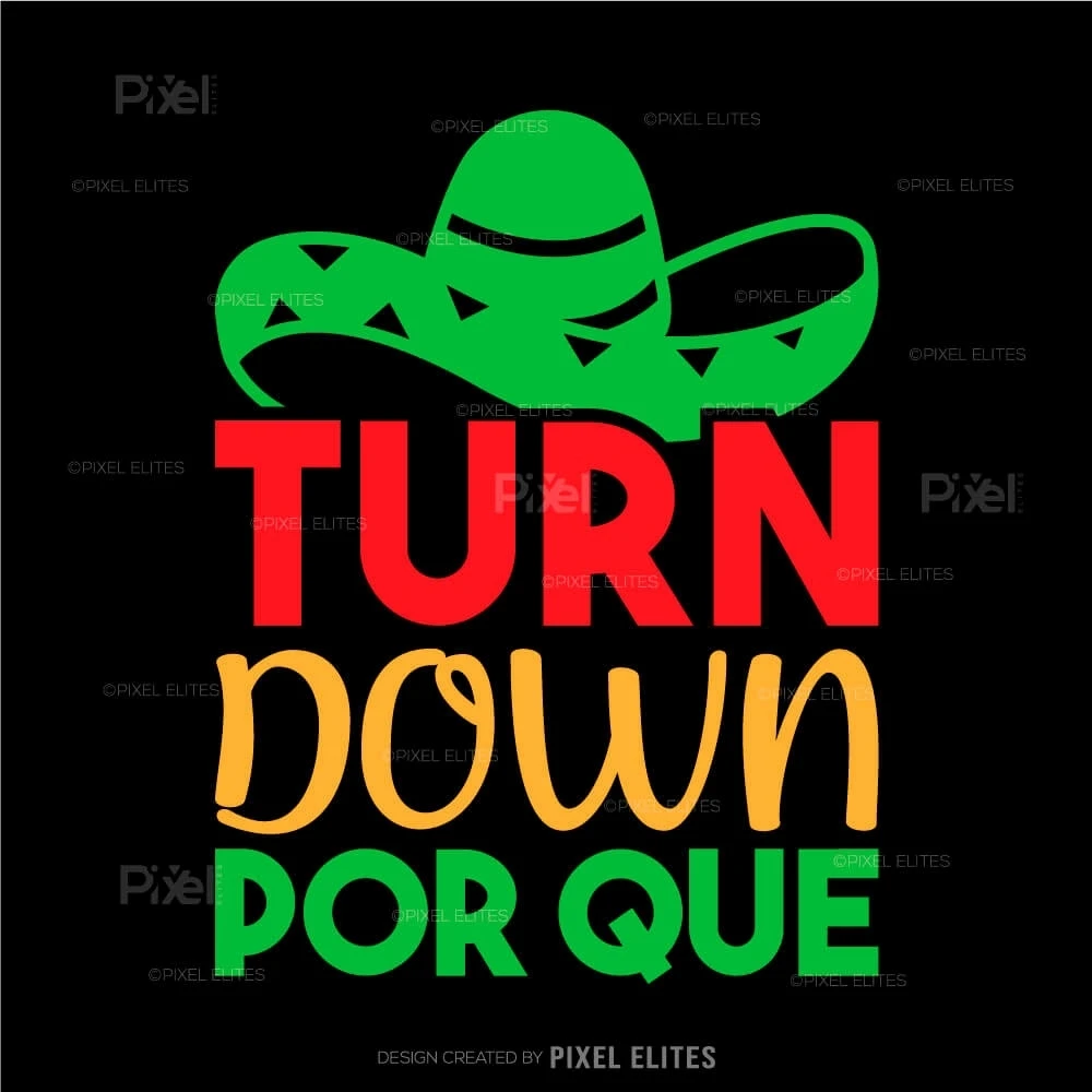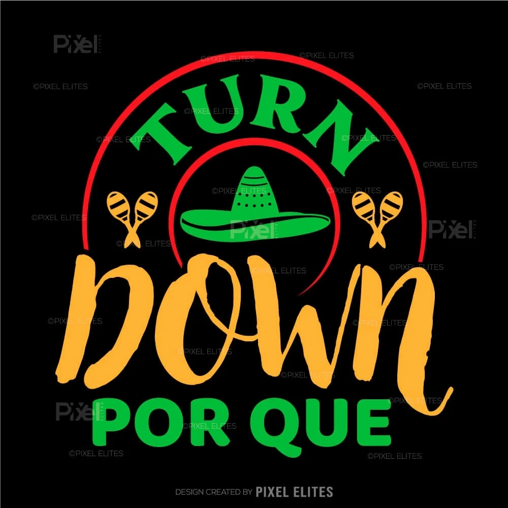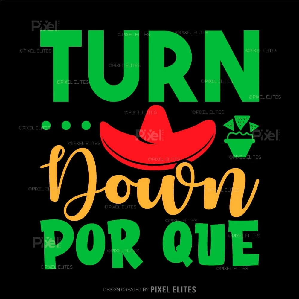 Get ready to celebrate Cinco De Mayo with our Turn Down Por Que SVG Design! This fun and vibrant design is perfect for capturing the lively spirit of the fiesta, making it an essential addition for anyone looking to enjoy the festivities with style and humor.