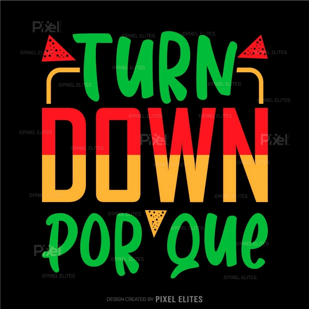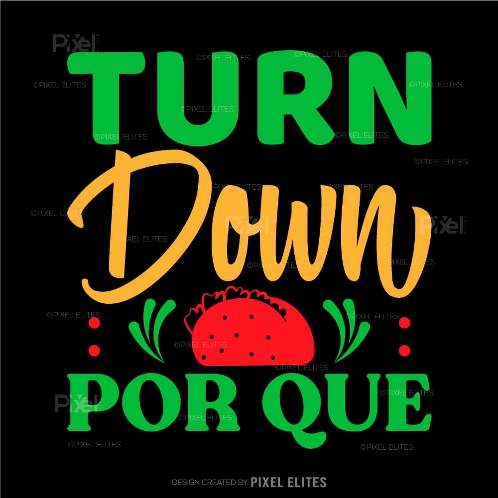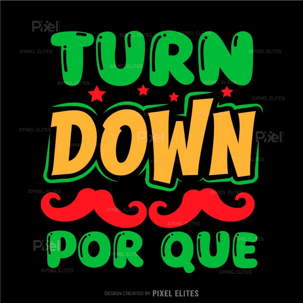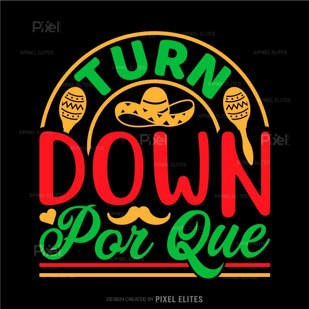 Get ready to celebrate Cinco De Mayo with our Turn Down Por Que SVG Design! This fun and vibrant design is perfect for capturing the lively spirit of the fiesta, making it an essential addition for anyone looking to enjoy the festivities with style and humor.