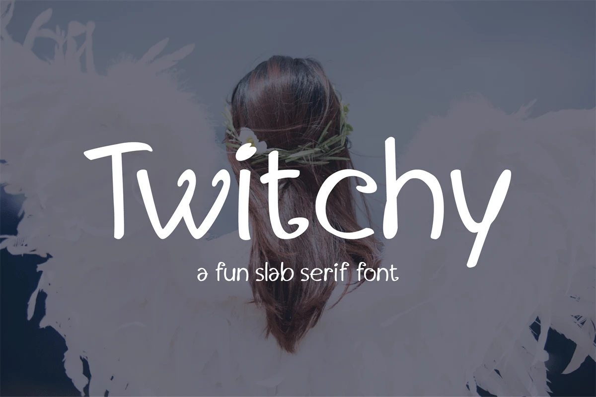 Twitchy is a whimsical script font with a relaxed theme, featuring a lovely style. No matter the topic, this font will be an incredibly asset to your fonts library, as it has the potential to elevate any creation.