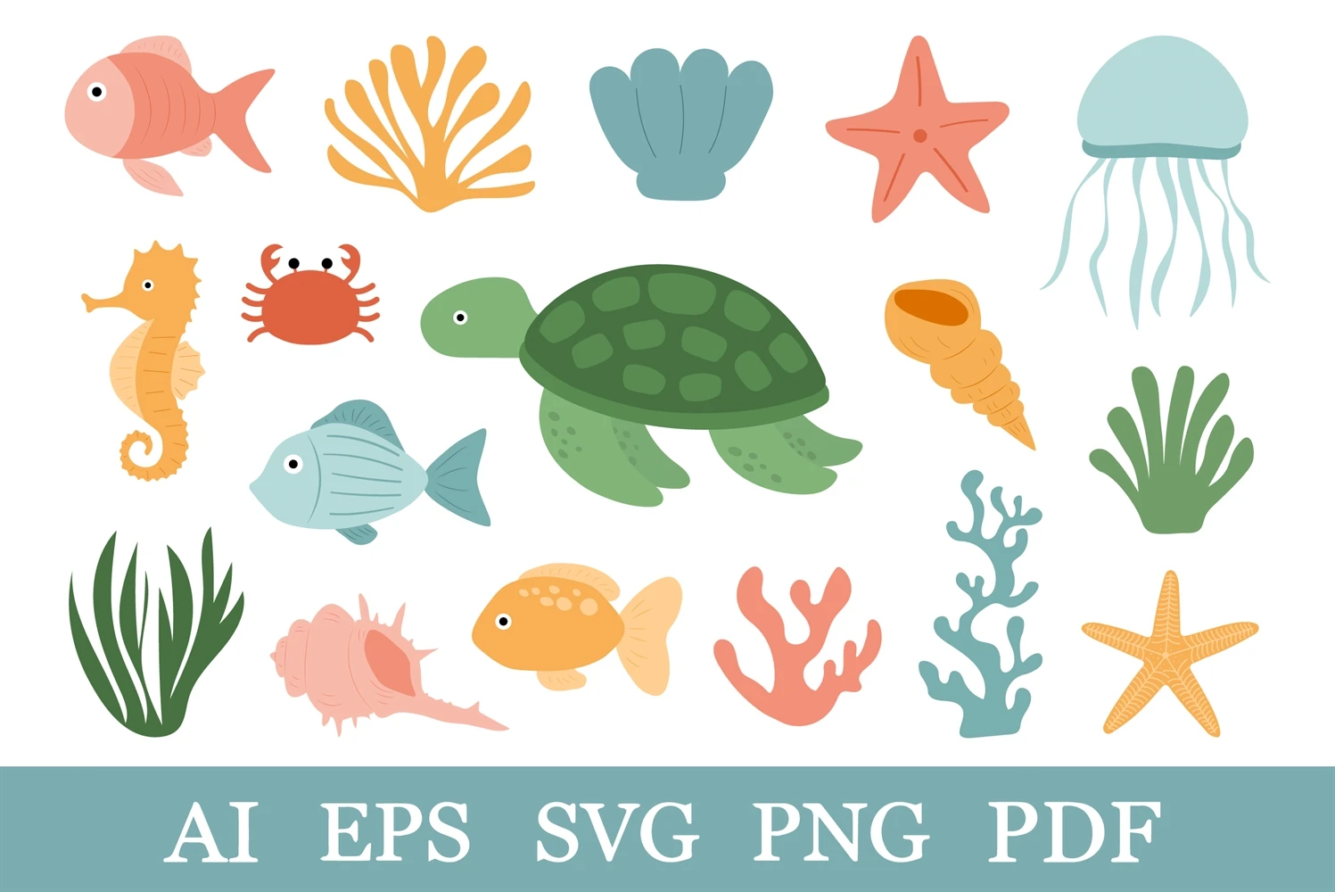 Undersea world SVG. Sea animal SVG. Sea shell starfish coral