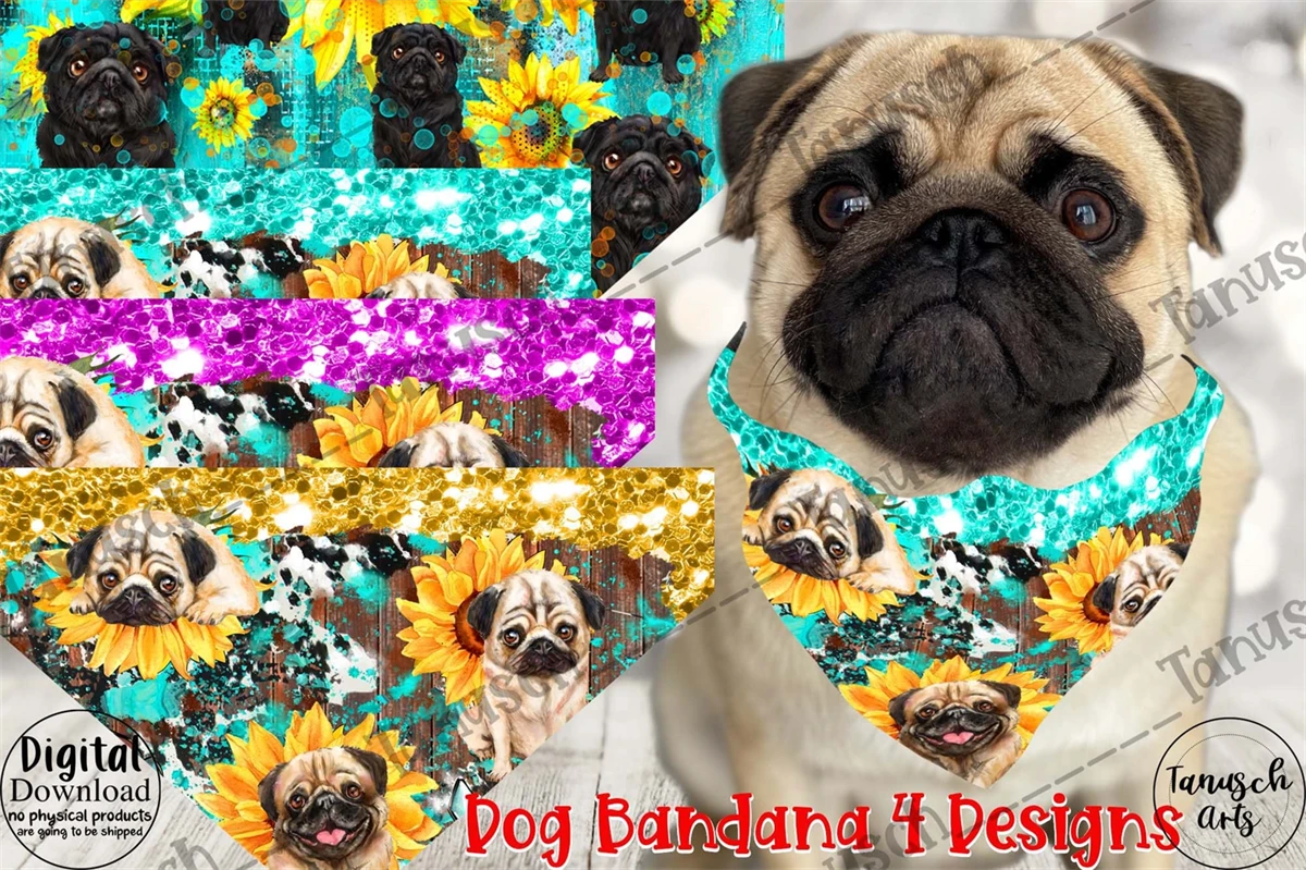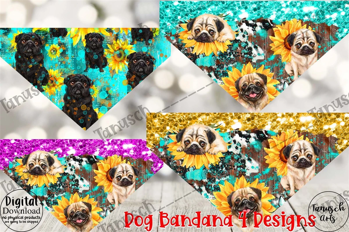 hand painted watercolor glitter turquoise western Sunflowers dog - diving PUG on a turquoise leopard background Sublimation BUNDLE pf 4 Designs of 4 different dachshund dogs DOG BANDANA Sublimation. Swimming and playing dog with a ball, some underwater images for your creative projects.