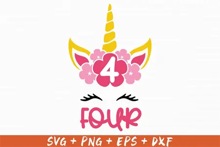 Unicorn Birthday Four Svg