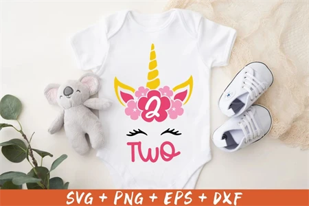 Unicorn Birthday Two Svg