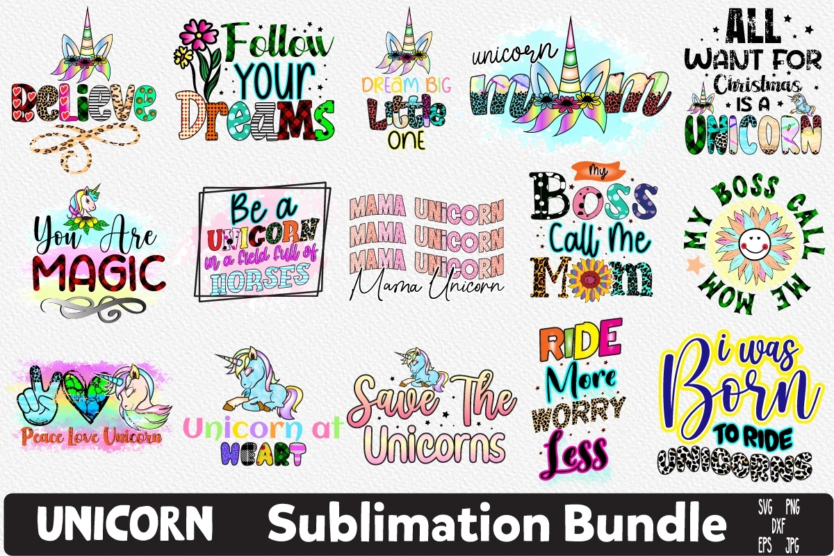Unicorn Typography T-shirt Sublimation Bundle