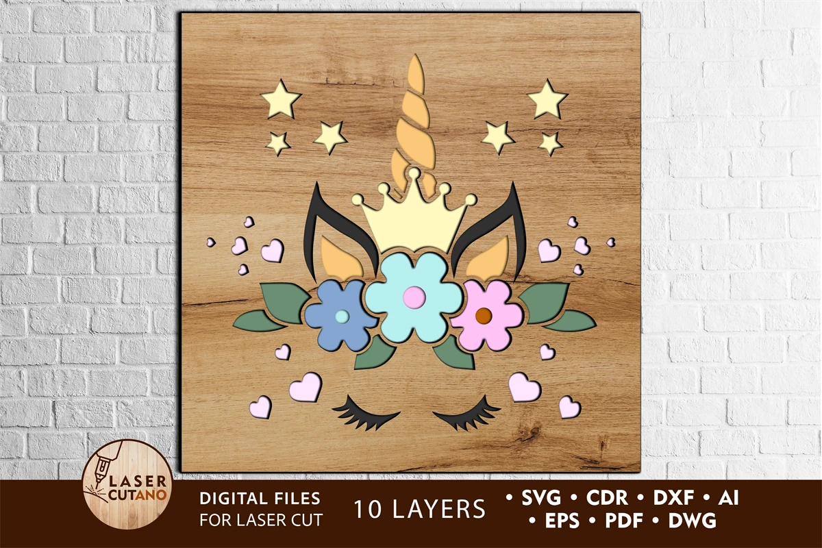 This is a unicorn wood cut out. You can use this files for laser cutting and cricut making. This Unicorn theme is good for kids room, cute events or unicorn theme decorations.