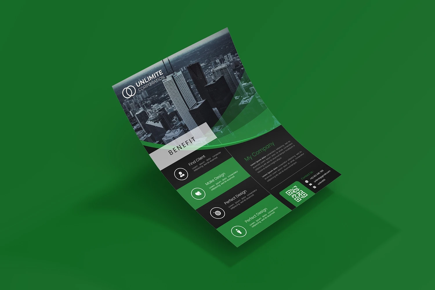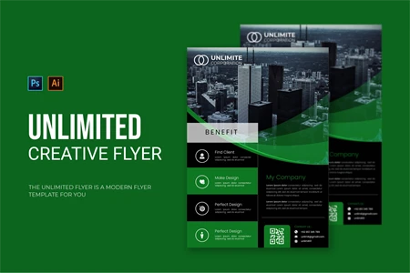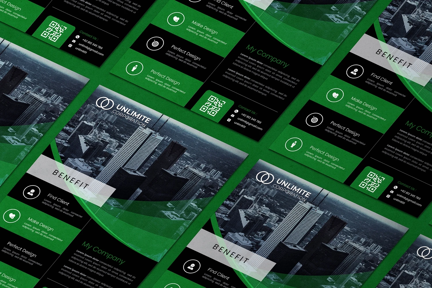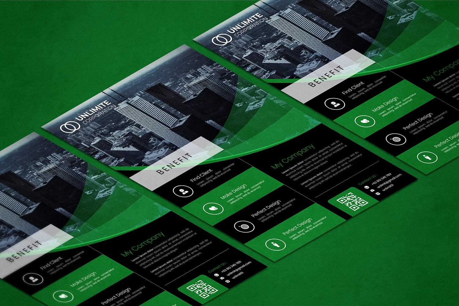 Unlimited Corporation - Flyer. This Flyer template is designed for your company's business needs. very clean and elegant, and also easily edited and adjusted to your liking