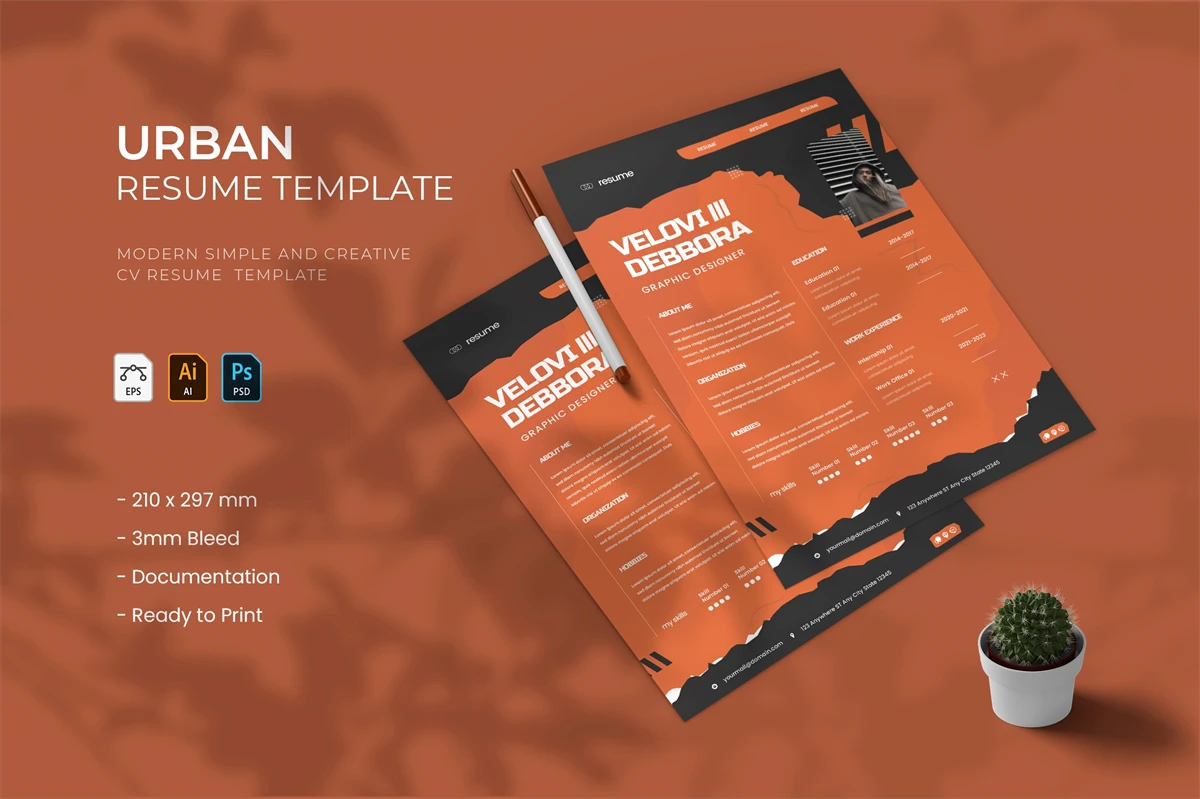 creative resume and cover letter template that will make your resume stand out from the hundreds of resumes employers get. It gives you the information you need, such as your name, contact information, social media links, education, experience, skills and interests. Also, it comes with three different color schemes.