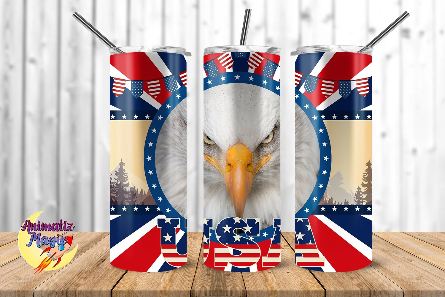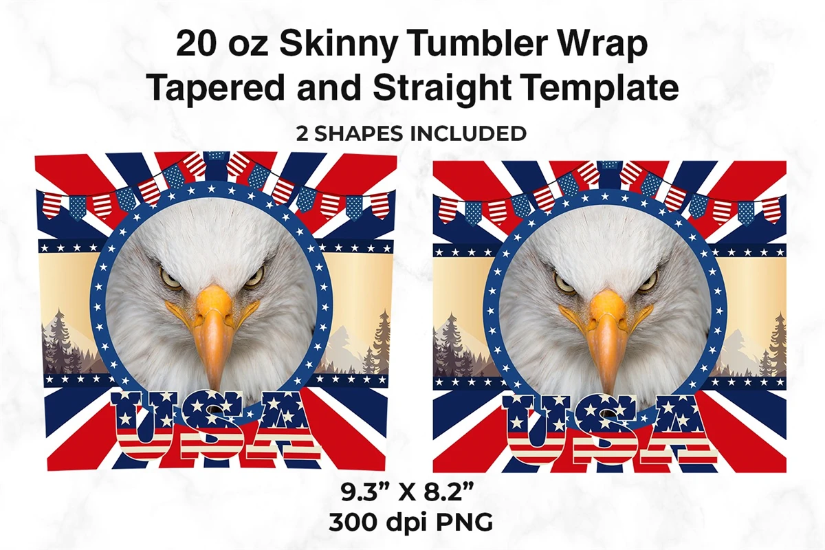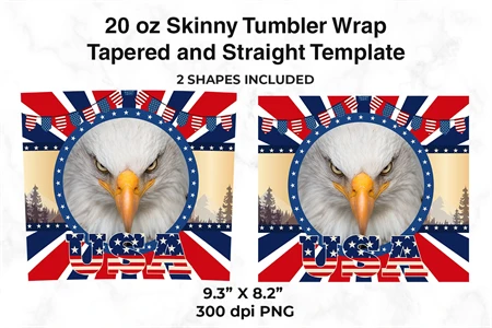 America Eagle & USA Flag 20 oz Skinny Tumbler Wrap Sublimation Design