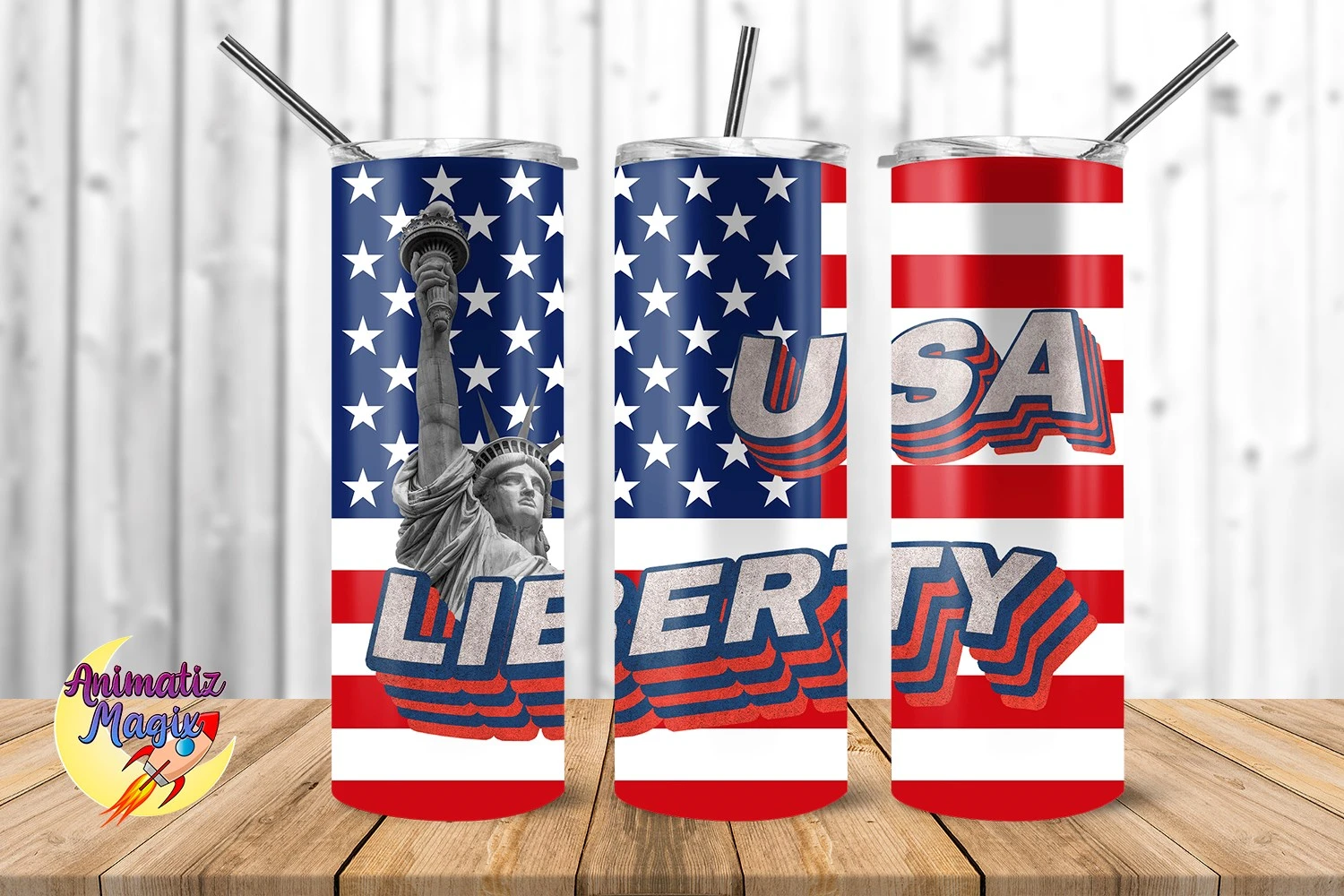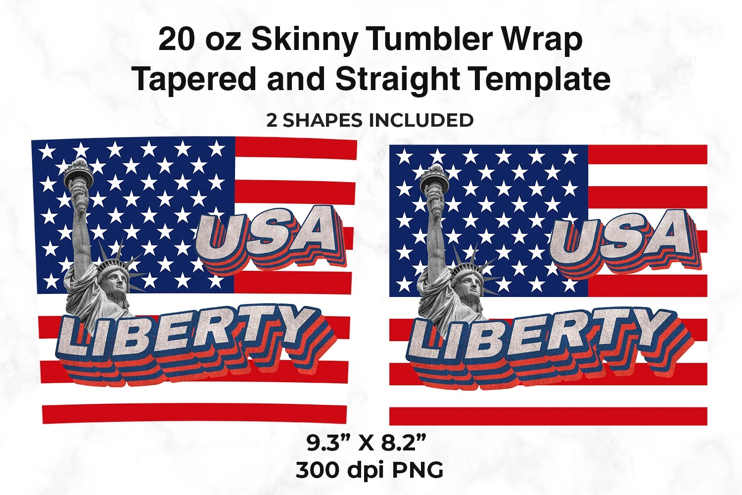 America Eagle & USA Flag 20 oz Skinny Tumbler Wrap Sublimation Design
