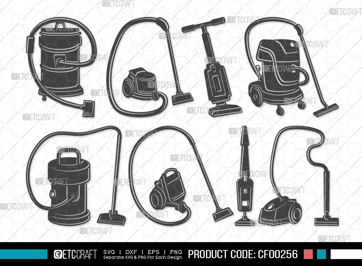 Whether you're promoting a cleaning service, creating educational materials, or simply adding a clean and efficient touch to your design projects, our Vacuum Cleaner Silhouette and Sweeper Housekeeping Tools SVG Cut File Bundle is your ultimate resource. Enhance your visuals with these high-quality graphics and take your projects to the next level. Get started with this bundle today!